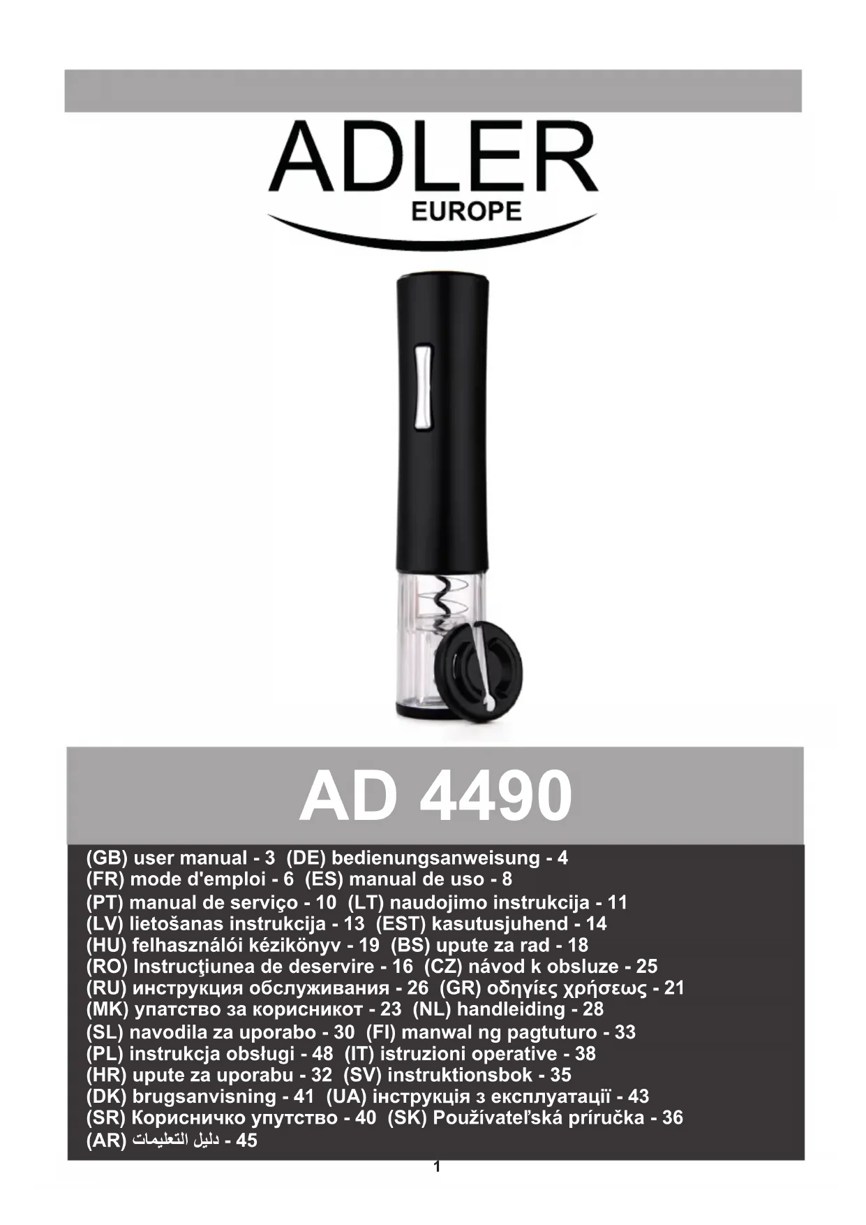 AD 4490 - Tire-bouchon ADLER - Notice d'utilisation et mode d'emploi gratuit