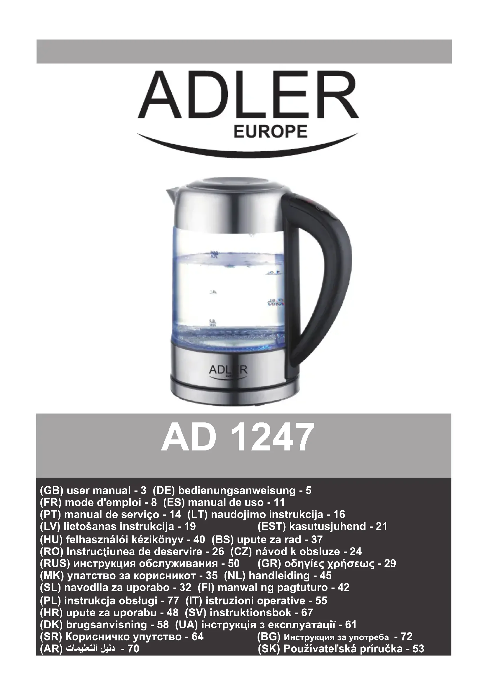 AD 1247 - Appareil à thé ADLER - Notice d'utilisation et mode d'emploi gratuit