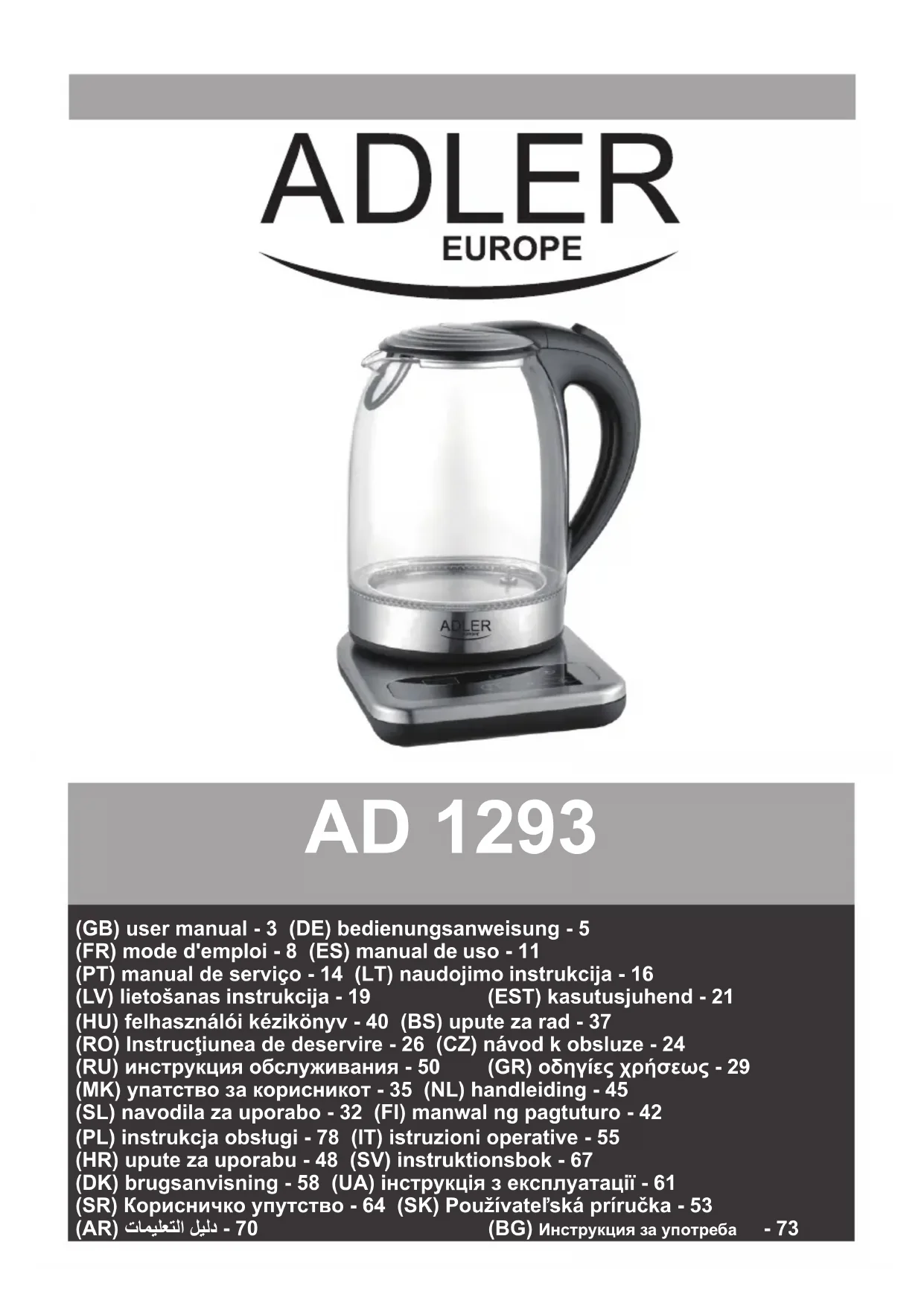 AD 1293 - Appareil à thé ADLER - Notice d'utilisation et mode d'emploi gratuit