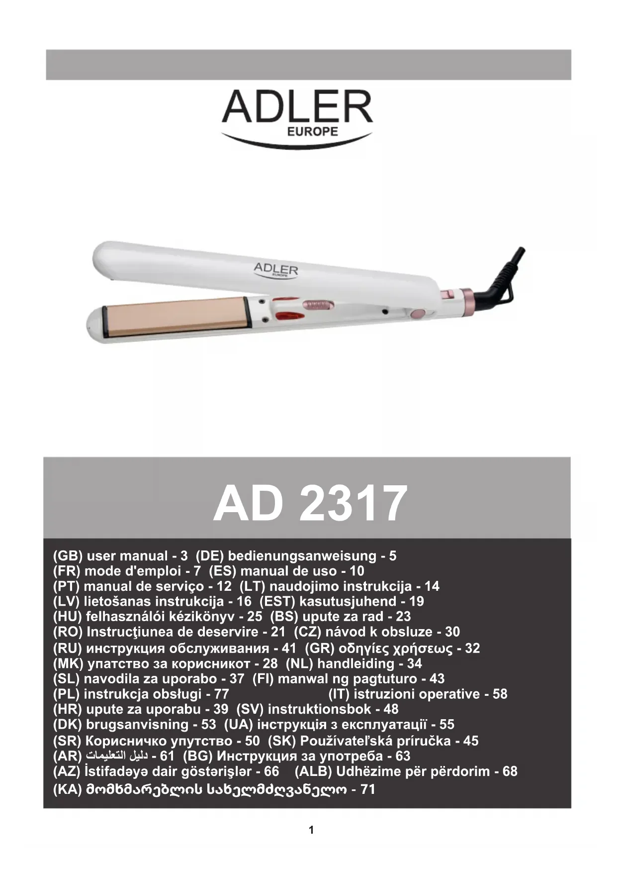 AD 2317 - Lisseur ADLER - Notice d'utilisation et mode d'emploi gratuit