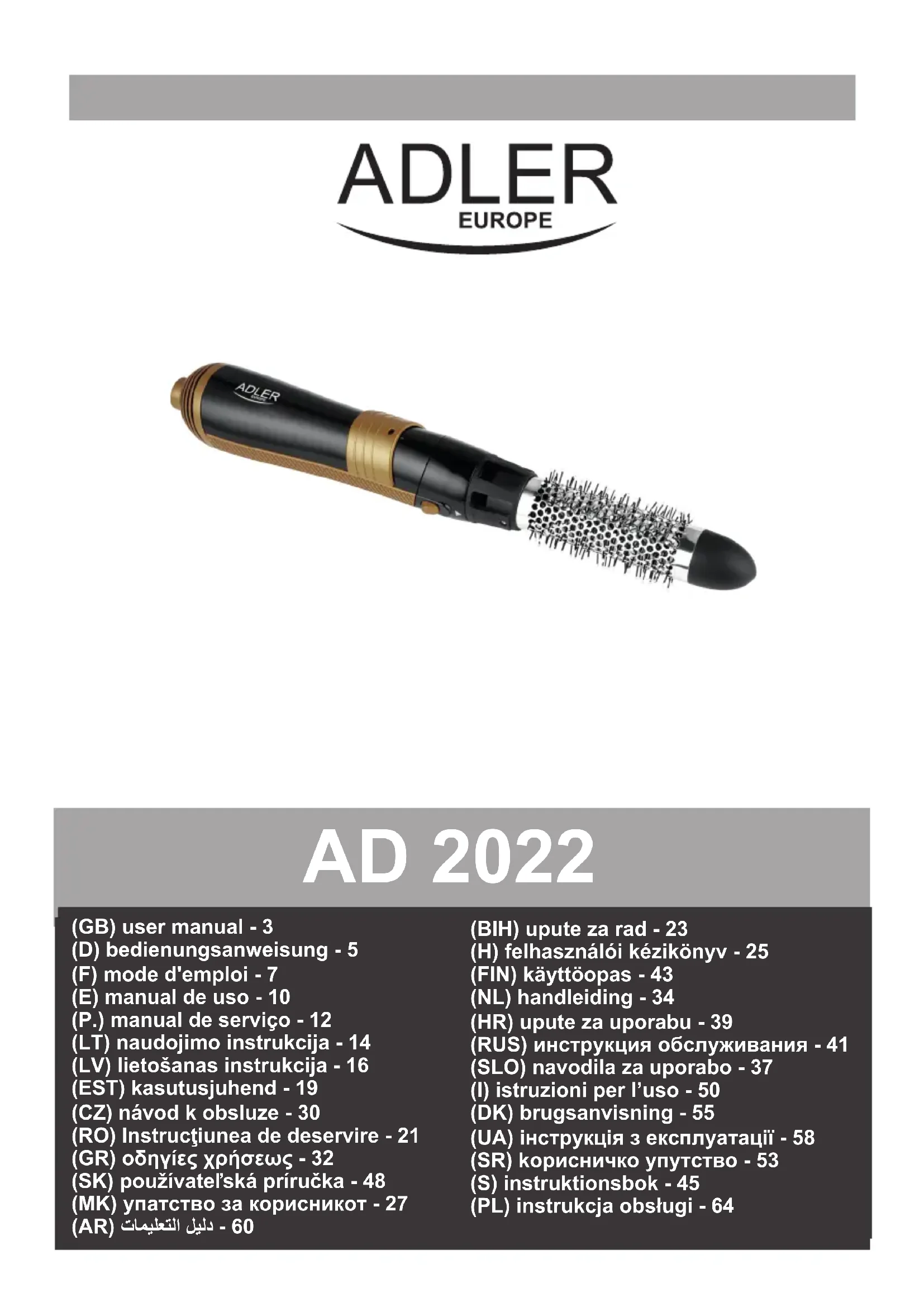 AD 2022 - Sèche cheveux ADLER - Notice d'utilisation et mode d'emploi gratuit