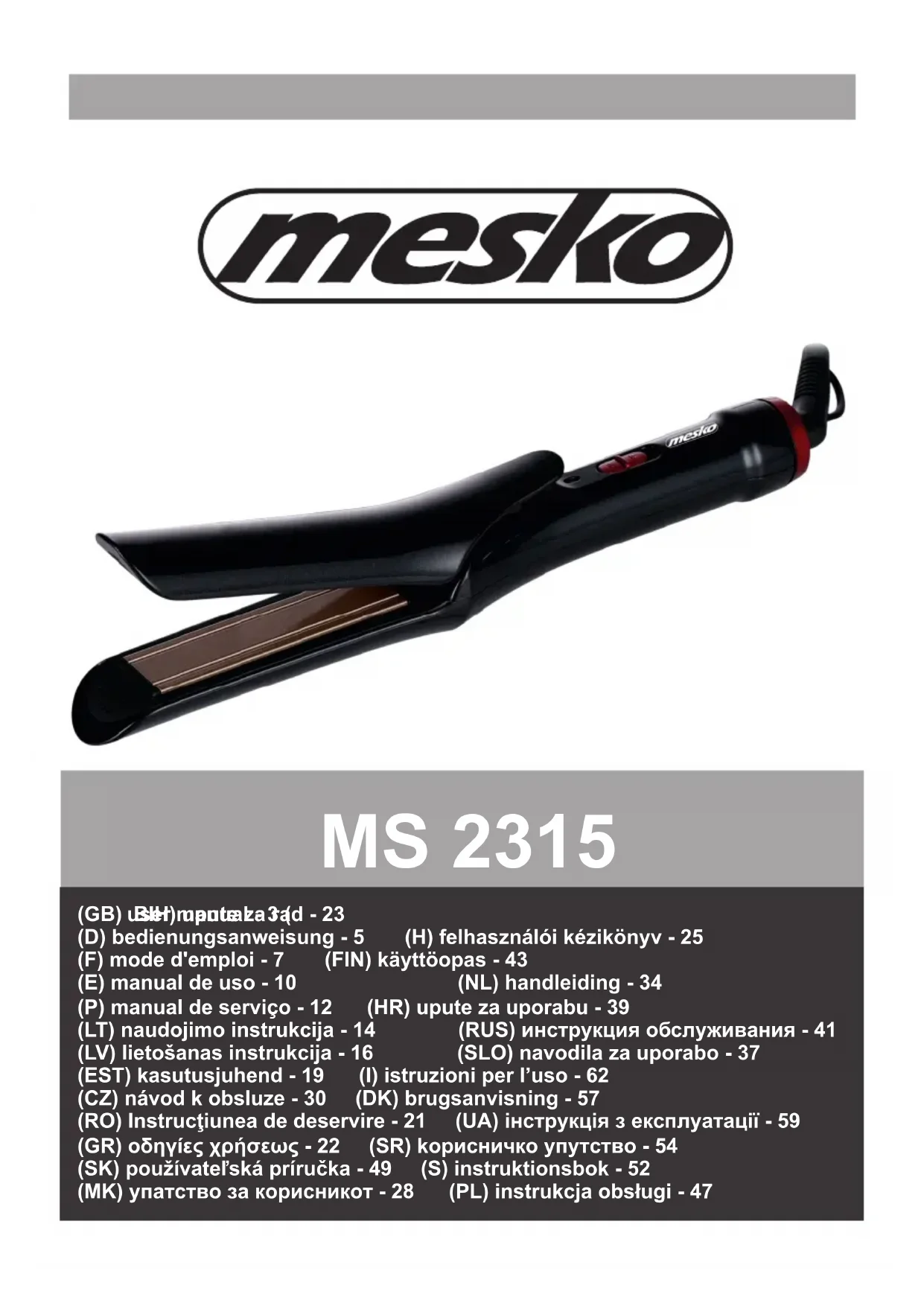 MS 2315 - Lisseur Mesko - Notice d'utilisation et mode d'emploi gratuit
