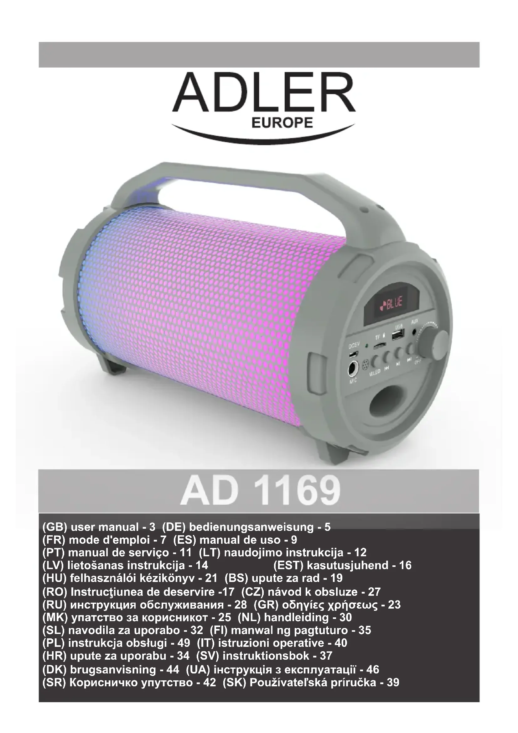 AD 1169 - Haut-parleur ADLER - Notice d'utilisation et mode d'emploi gratuit