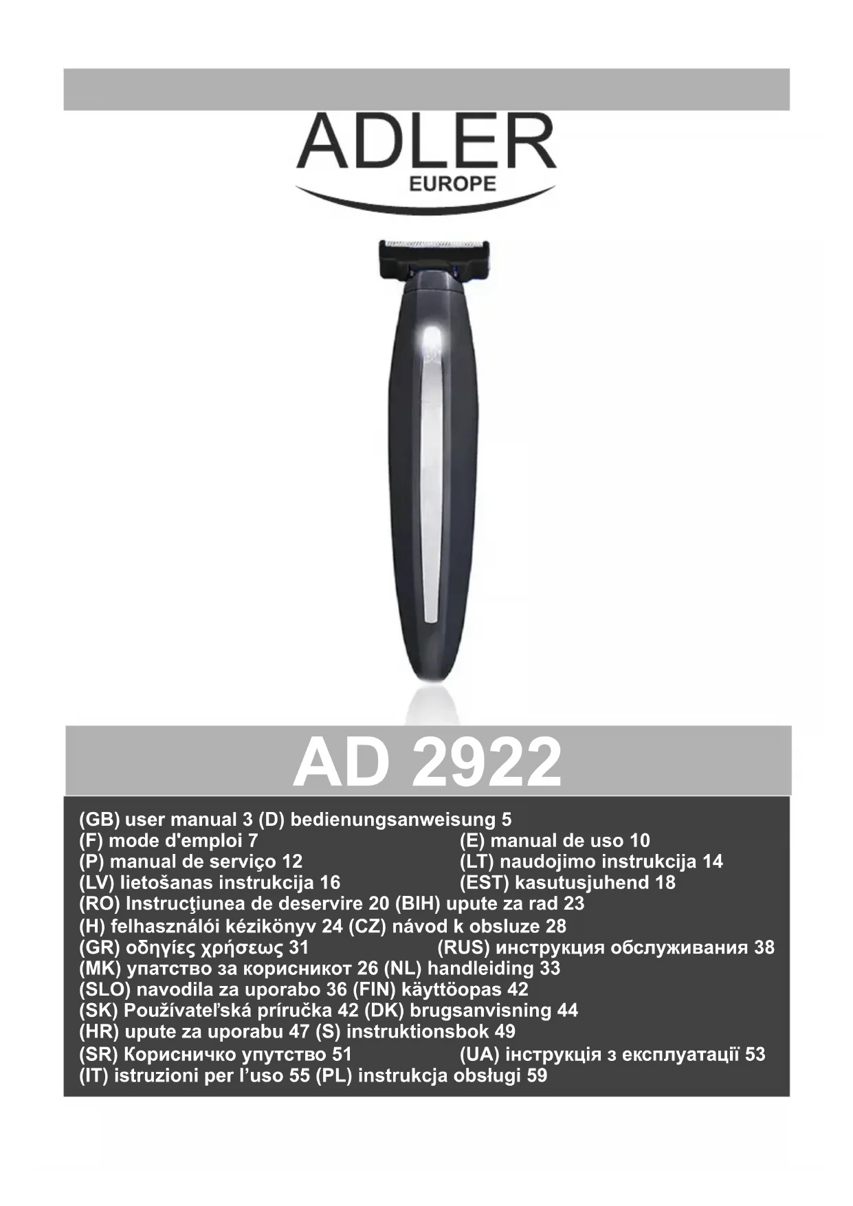Retrouvez gratuitement la notice de l'appareil AD 2922 ADLER au format PDF.