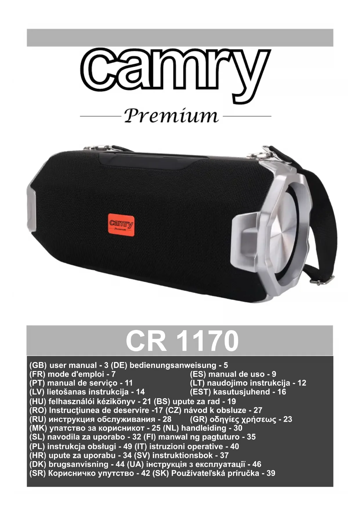 CR 1170 - Haut-parleur CAMRY - Notice d'utilisation et mode d'emploi gratuit