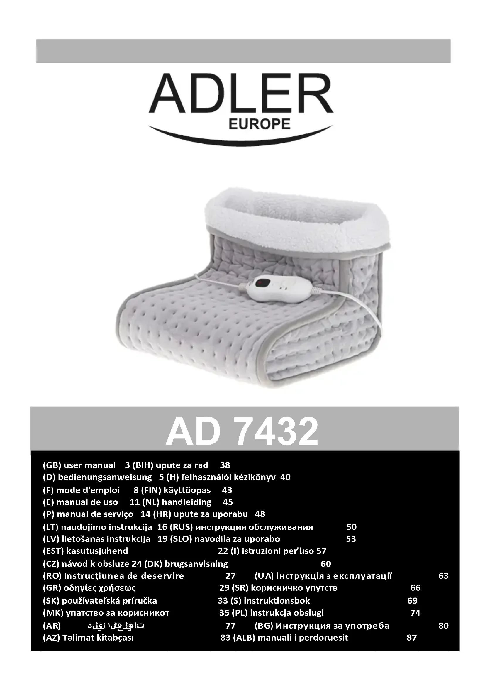 Retrouvez gratuitement la notice de l'appareil AD 7432 ADLER au format PDF.