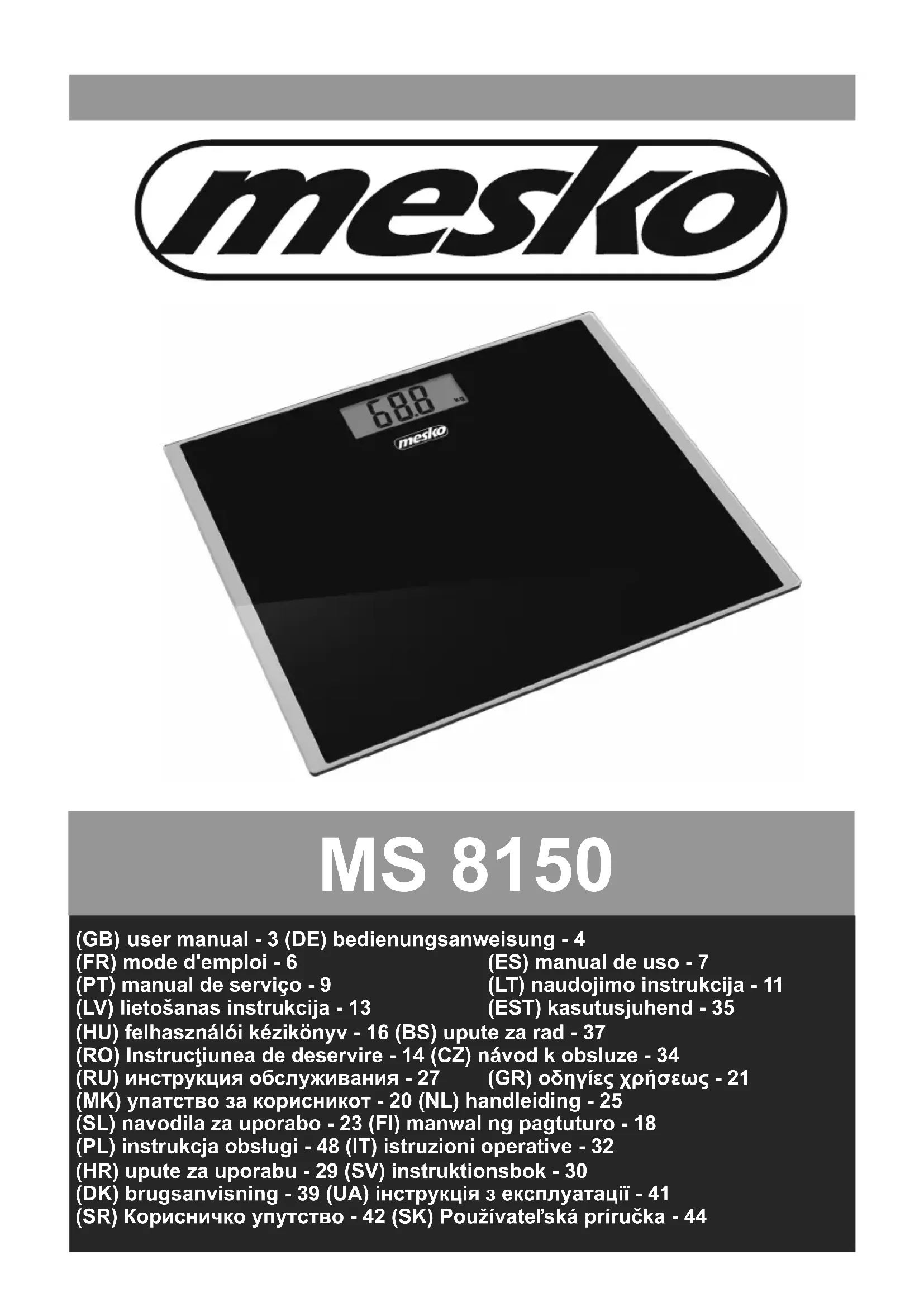 Retrouvez gratuitement la notice de l'appareil MS 8150 Mesko au format PDF.