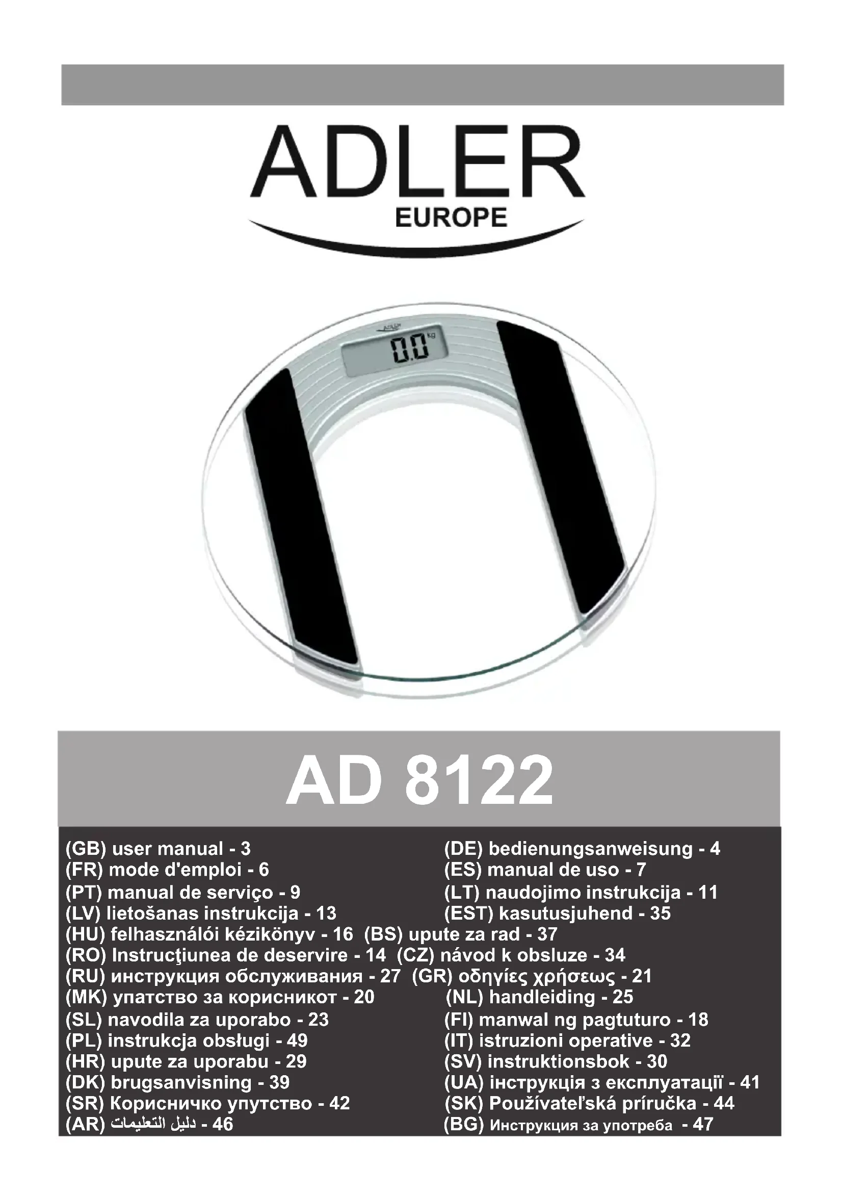 Retrouvez gratuitement la notice de l'appareil AD 8122 ADLER au format PDF.