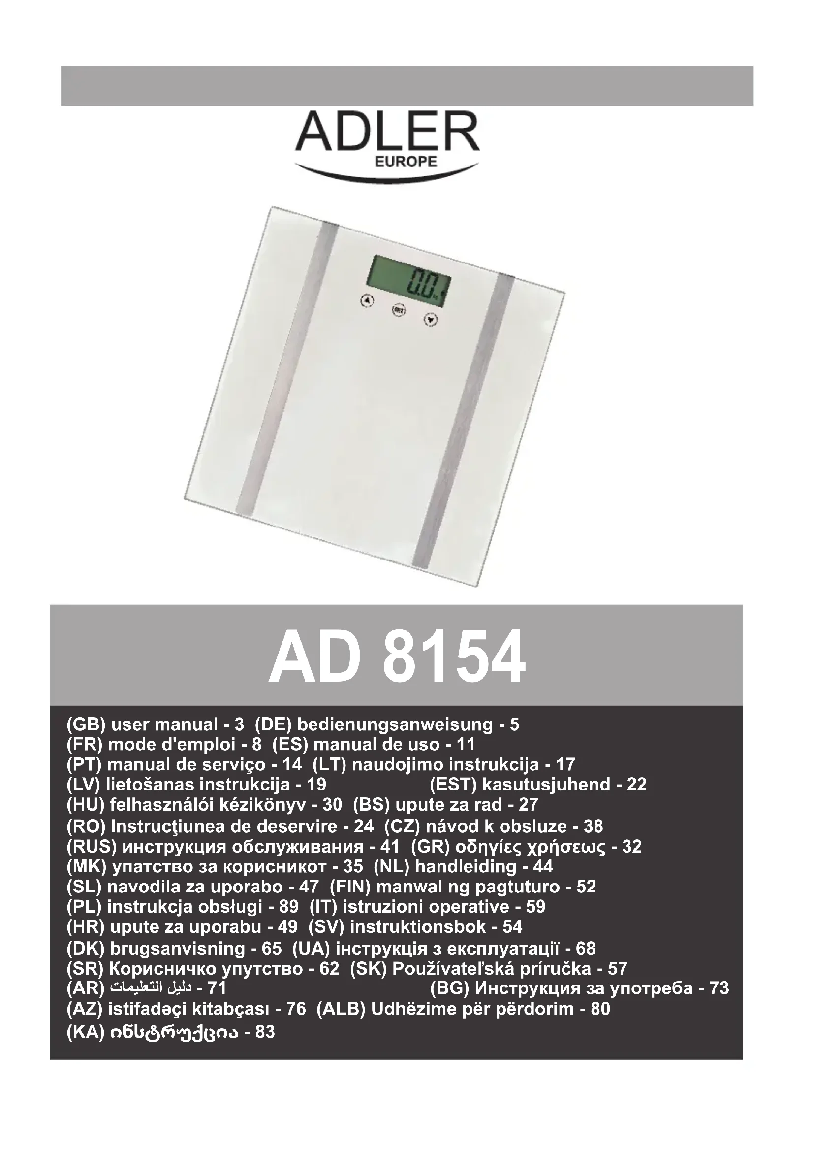 Retrouvez gratuitement la notice de l'appareil AD 8154 ADLER au format PDF.
