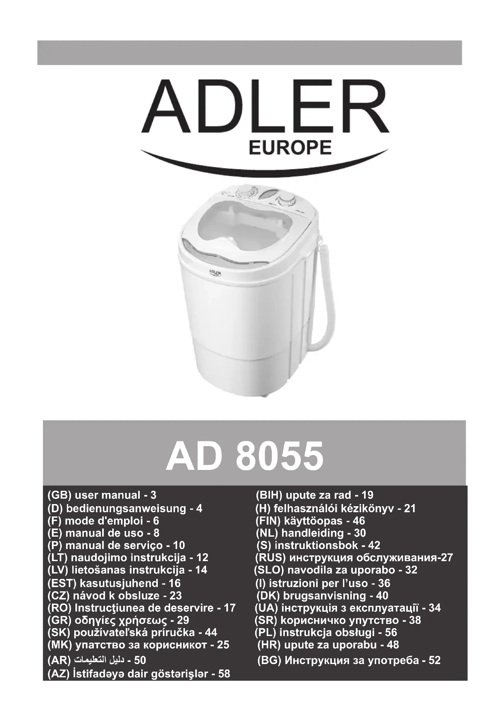 AD 8055 - Machine à laver ADLER - Notice d'utilisation et mode d'emploi gratuit