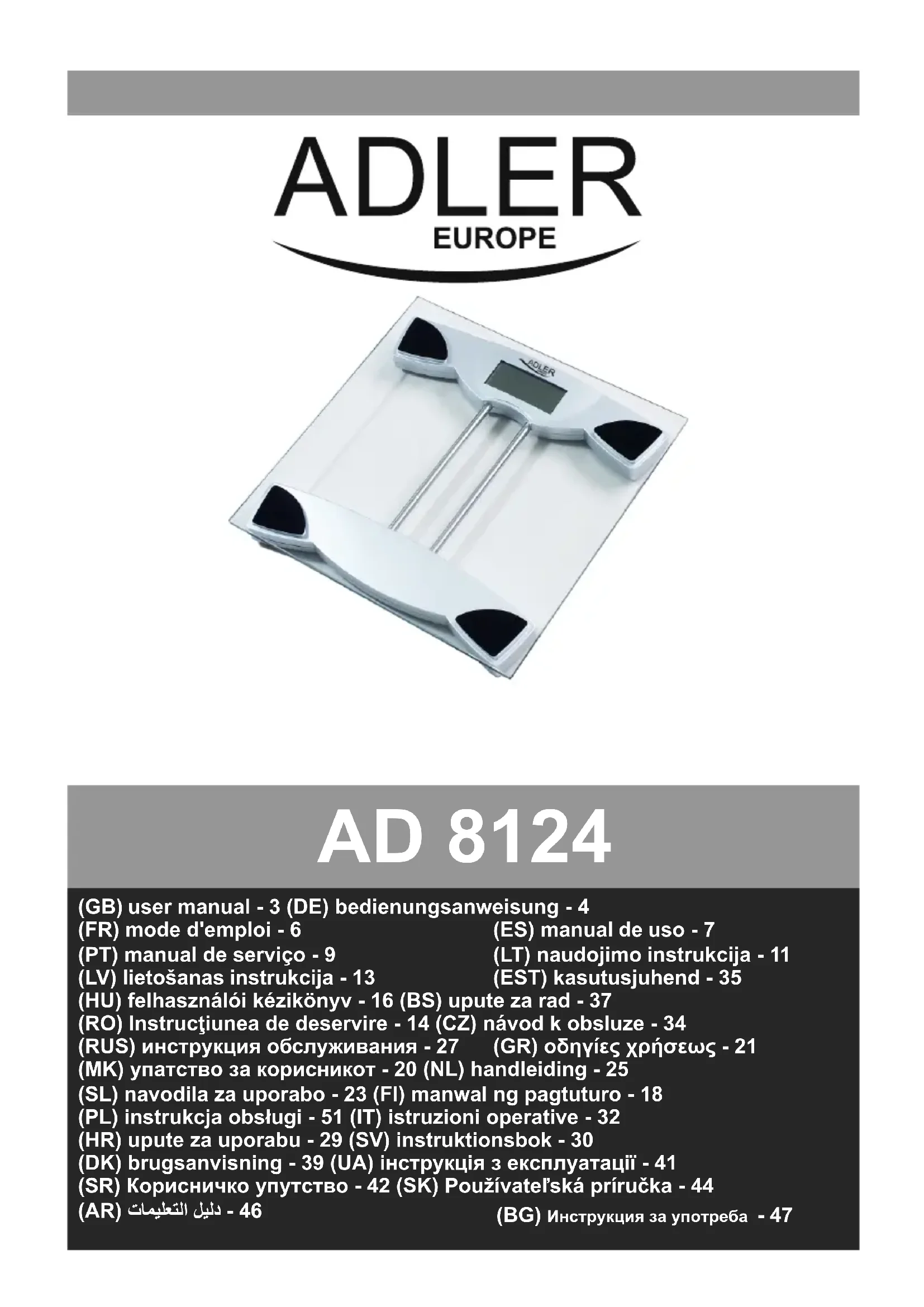 Retrouvez gratuitement la notice de l'appareil AD 8124 ADLER au format PDF.
