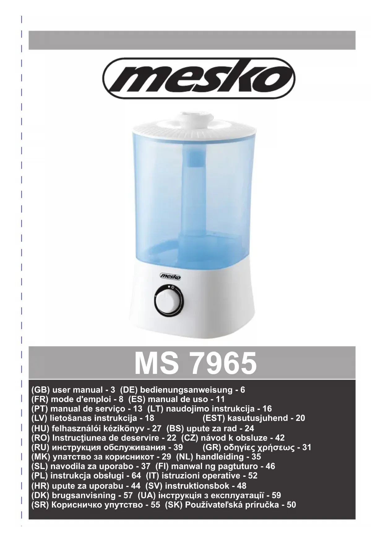 MS 7965 - Humidificateur Mesko - Notice d'utilisation et mode d'emploi gratuit
