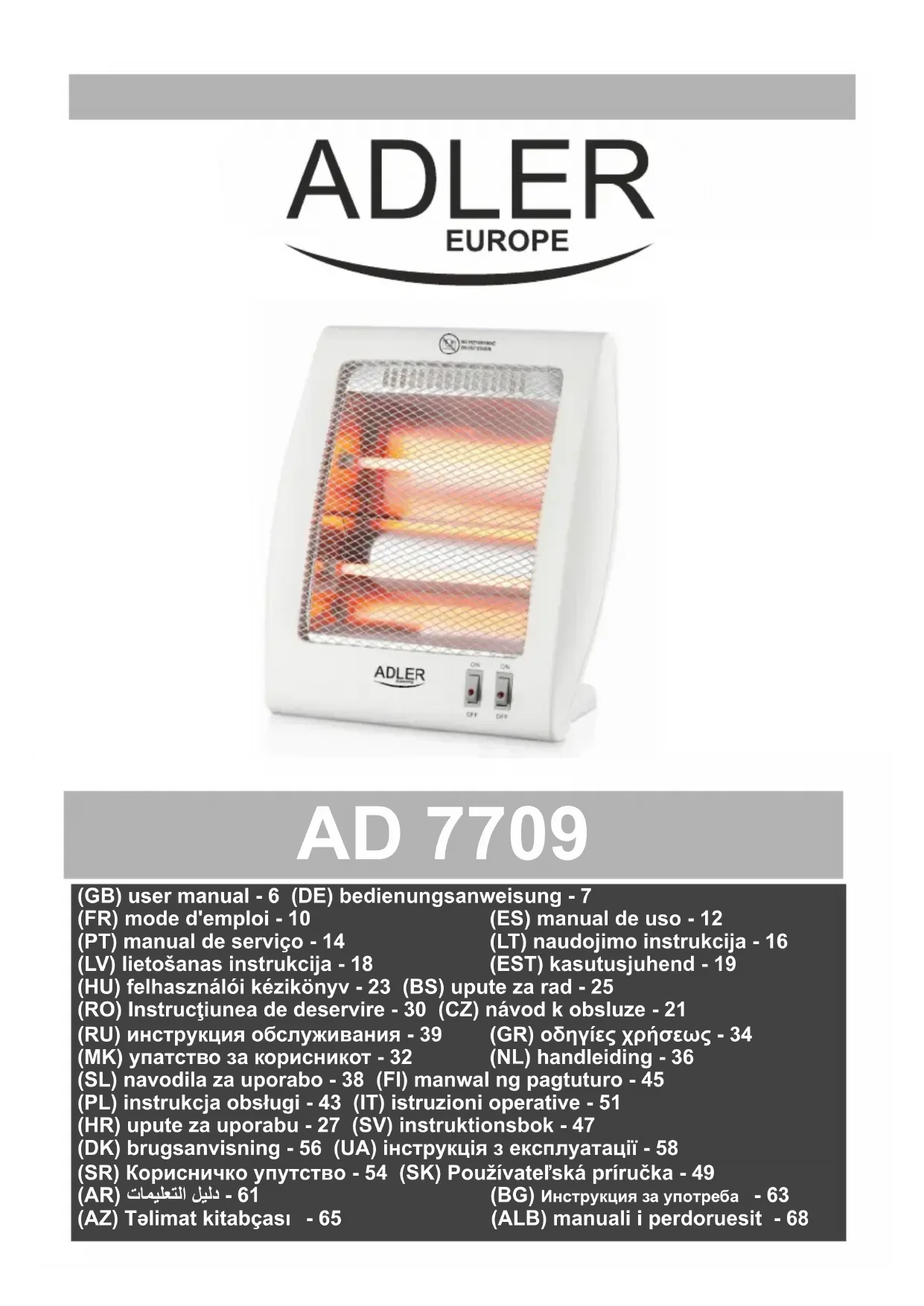 AD 7709 - Chauffage ADLER - Notice d'utilisation et mode d'emploi gratuit