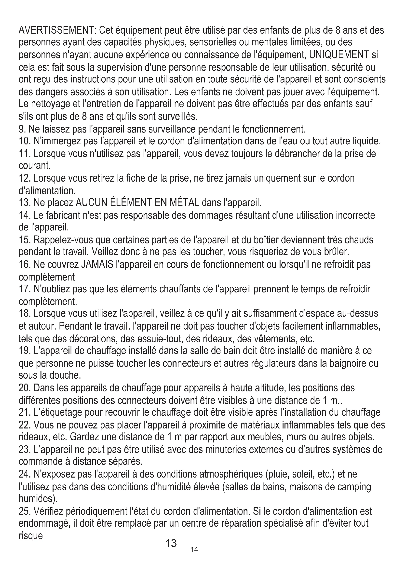7. L'appareil ne doit pas être utilisé par des enfants ou des personnes ayant des capacités