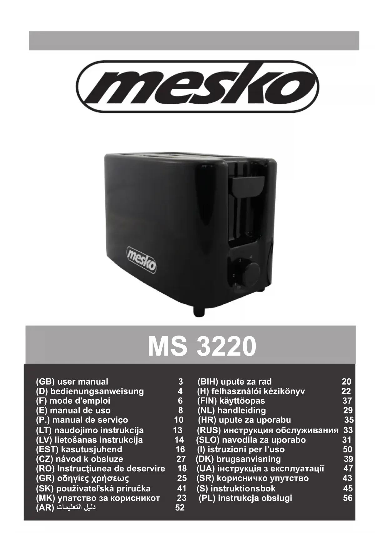 MS 3220 - Grille-pain Mesko - Notice d'utilisation et mode d'emploi gratuit