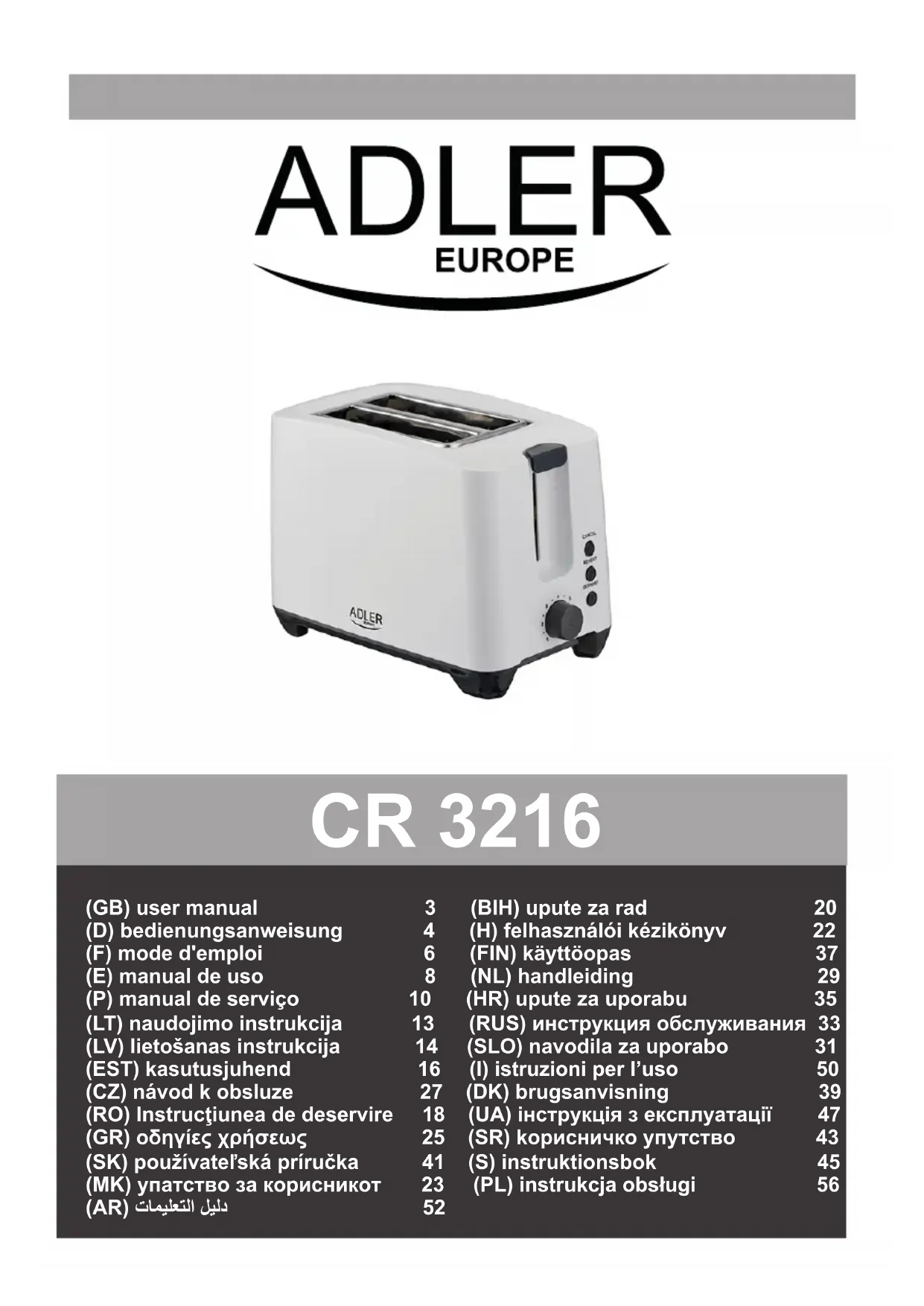 AD 3216 - Grille-pain ADLER - Notice d'utilisation et mode d'emploi gratuit