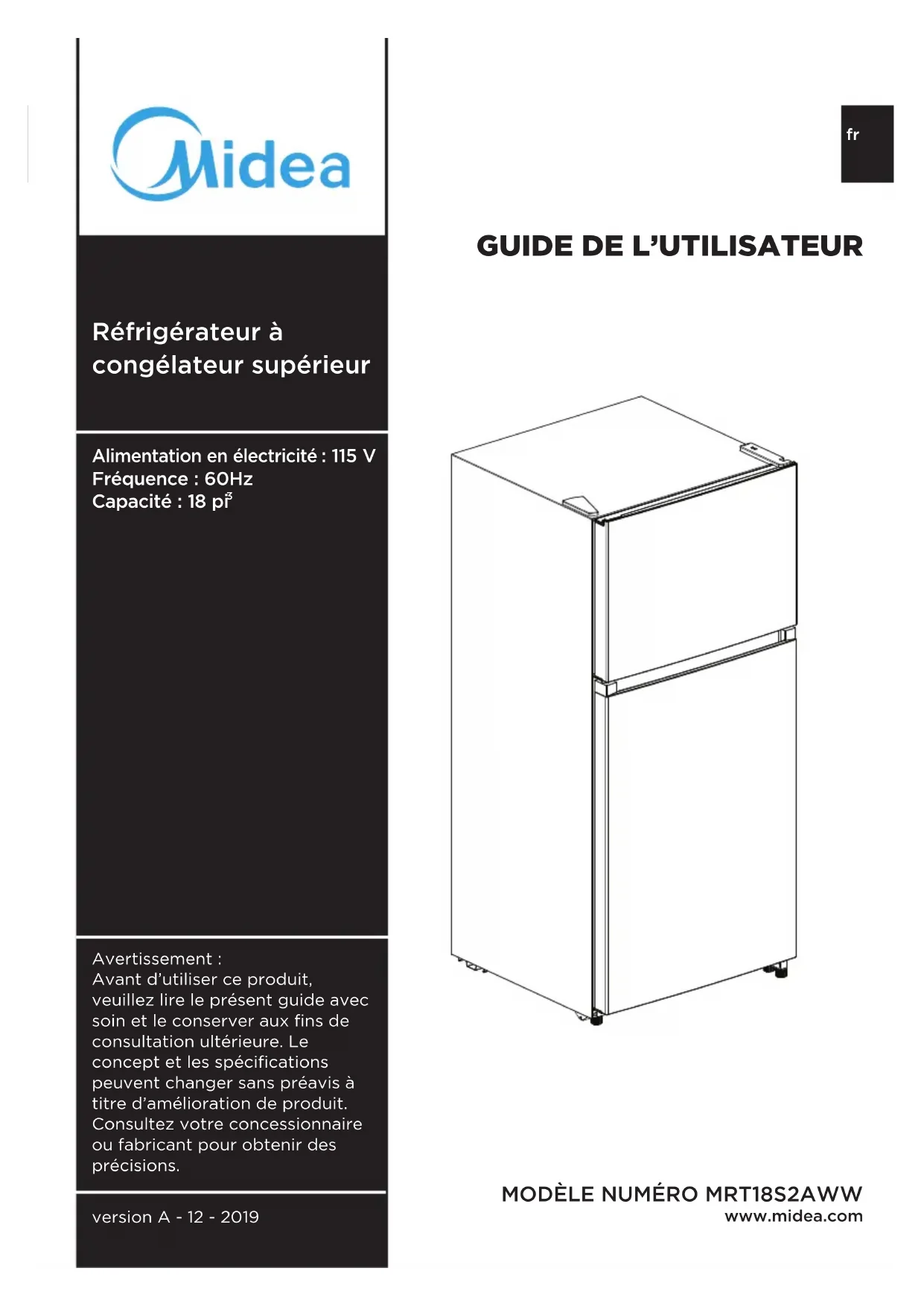 MRT18S2AWW - Réfrigérateur MIDEA - Notice d'utilisation et mode d'emploi gratuit