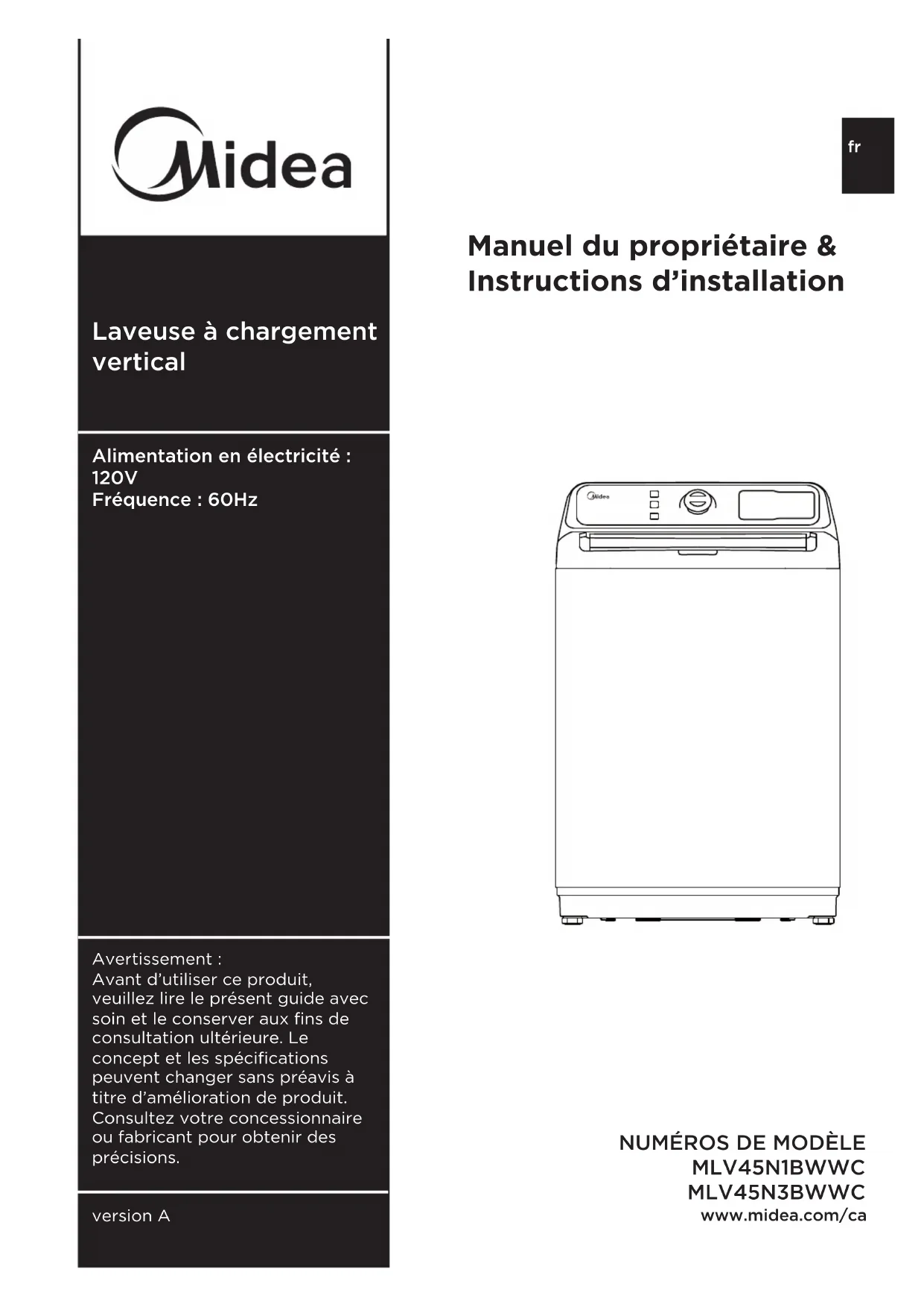 MLV45N1BWWC - Machine à laver MIDEA - Notice d'utilisation et mode d'emploi gratuit