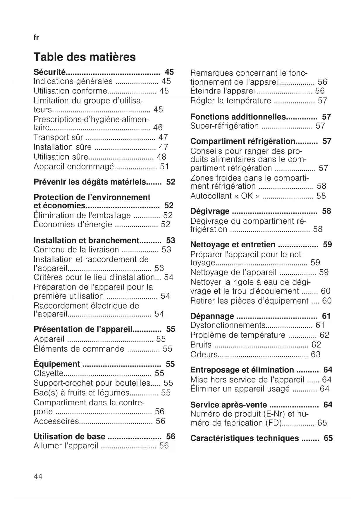 - Mise hors service de l’appareil p. 64