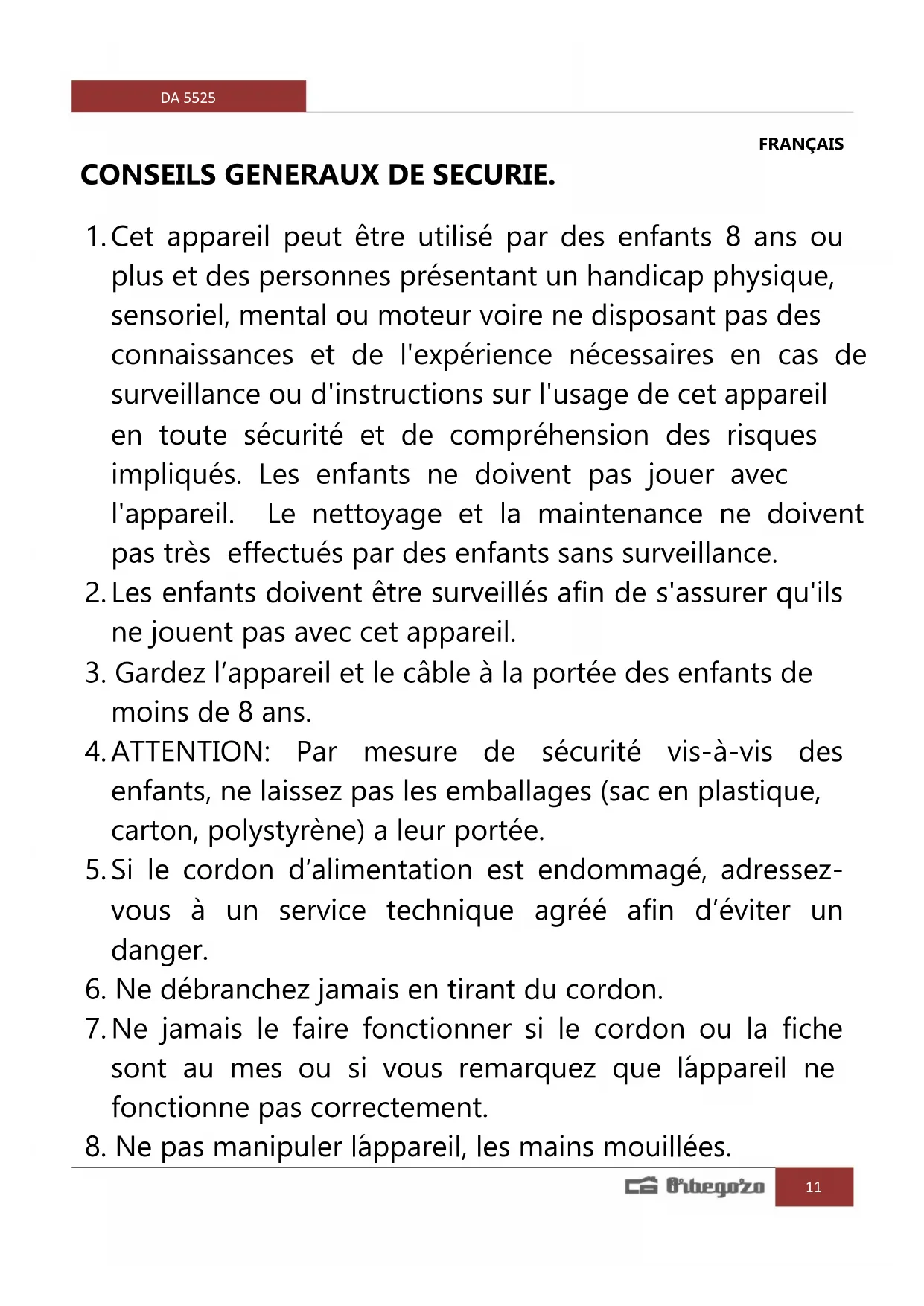 MODE D'EMPLOI DA 5525 Orbegozo