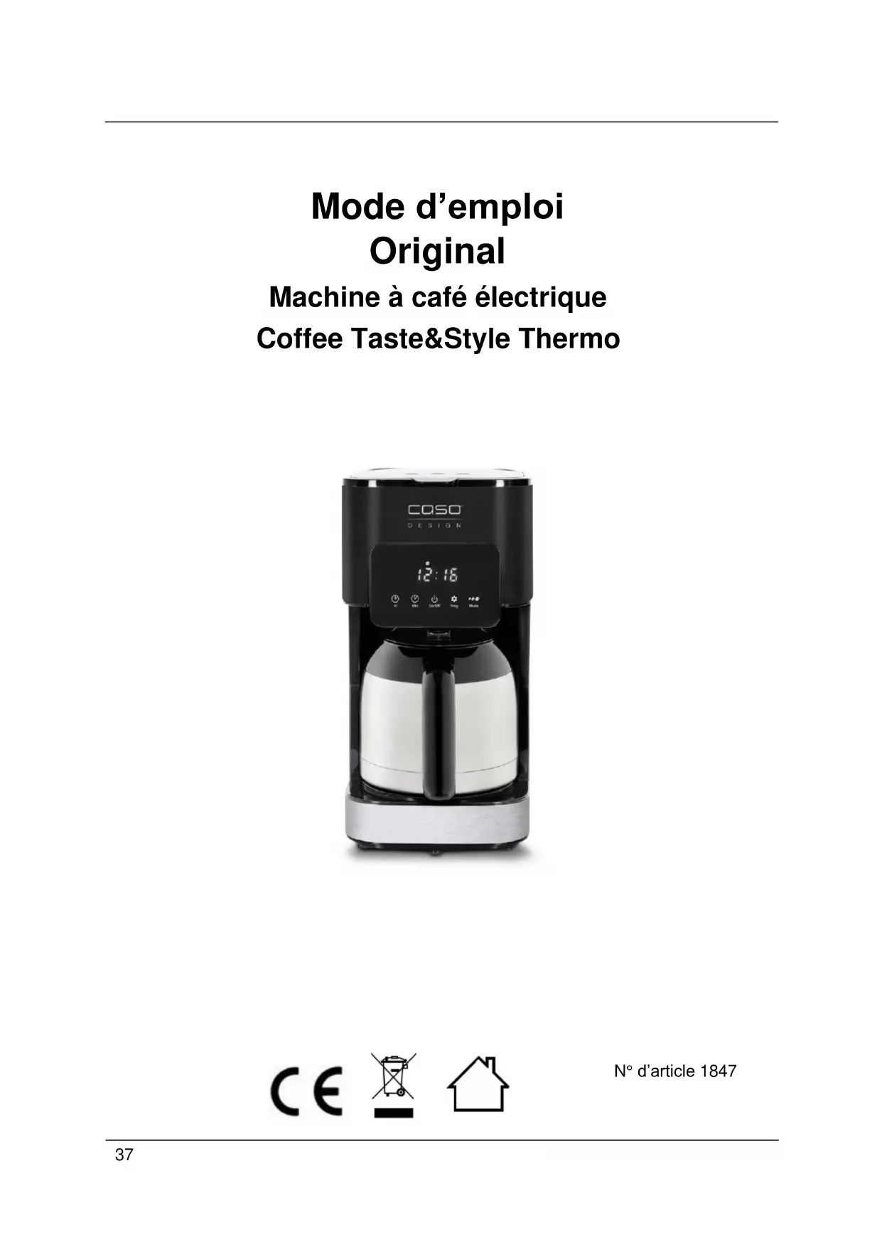 Retrouvez gratuitement la notice de l'appareil Coffee Taste & Style Thermo CASO au format PDF.