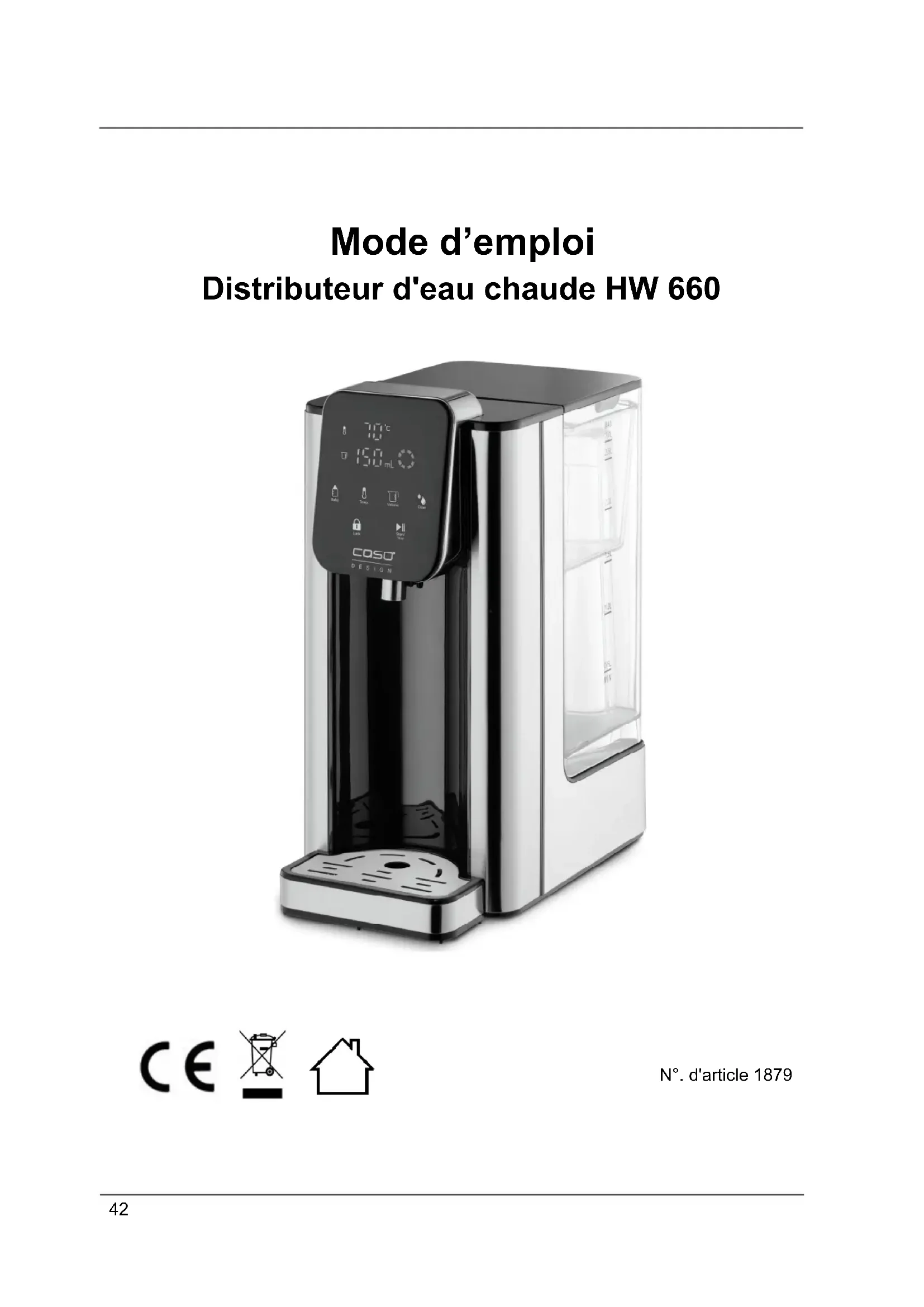 HW 660 - Distributeur d'eau CASO - Notice d'utilisation et mode d'emploi gratuit