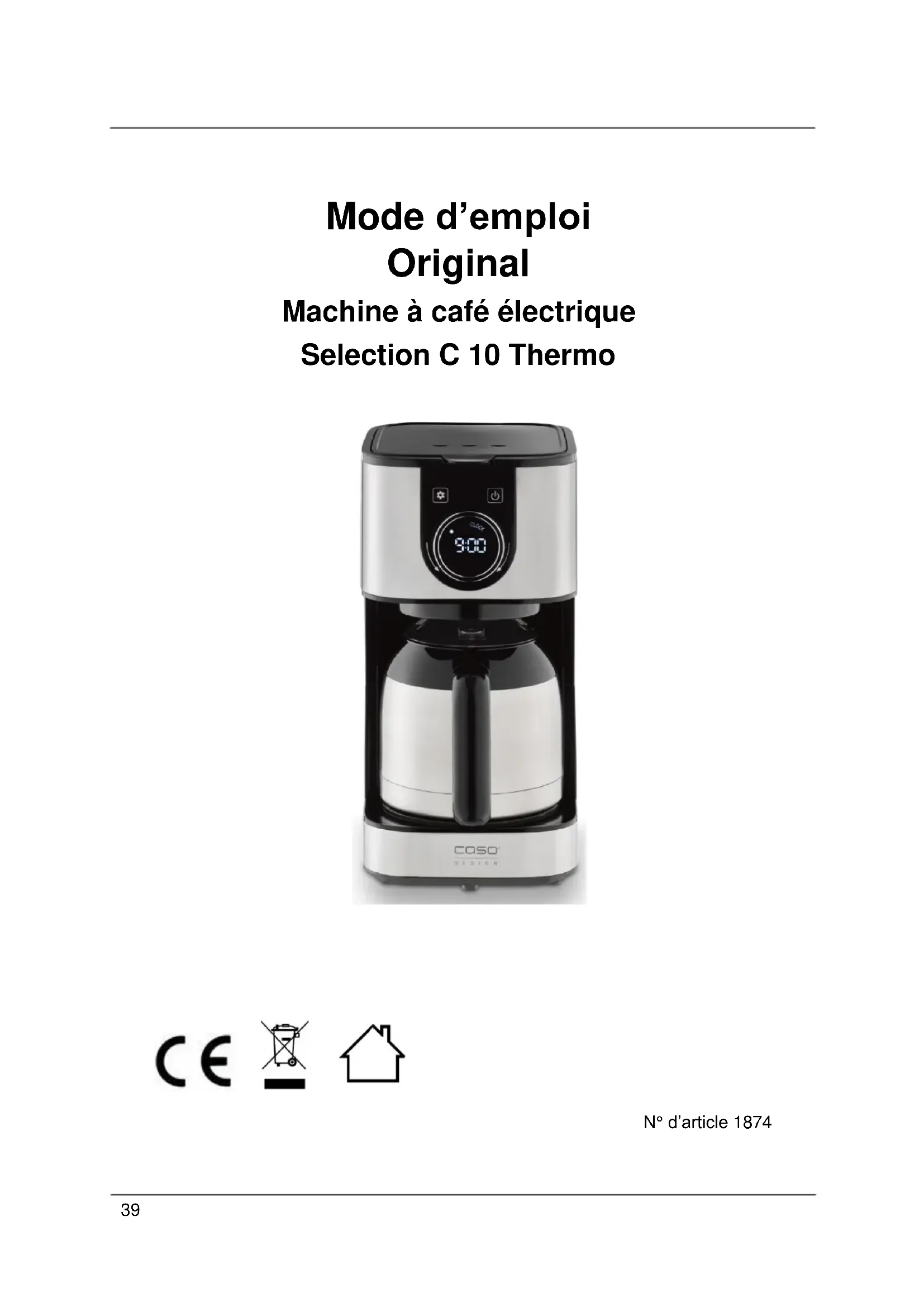 Selection C 10 Thermo - Machine à café CASO - Notice d'utilisation et mode d'emploi gratuit
