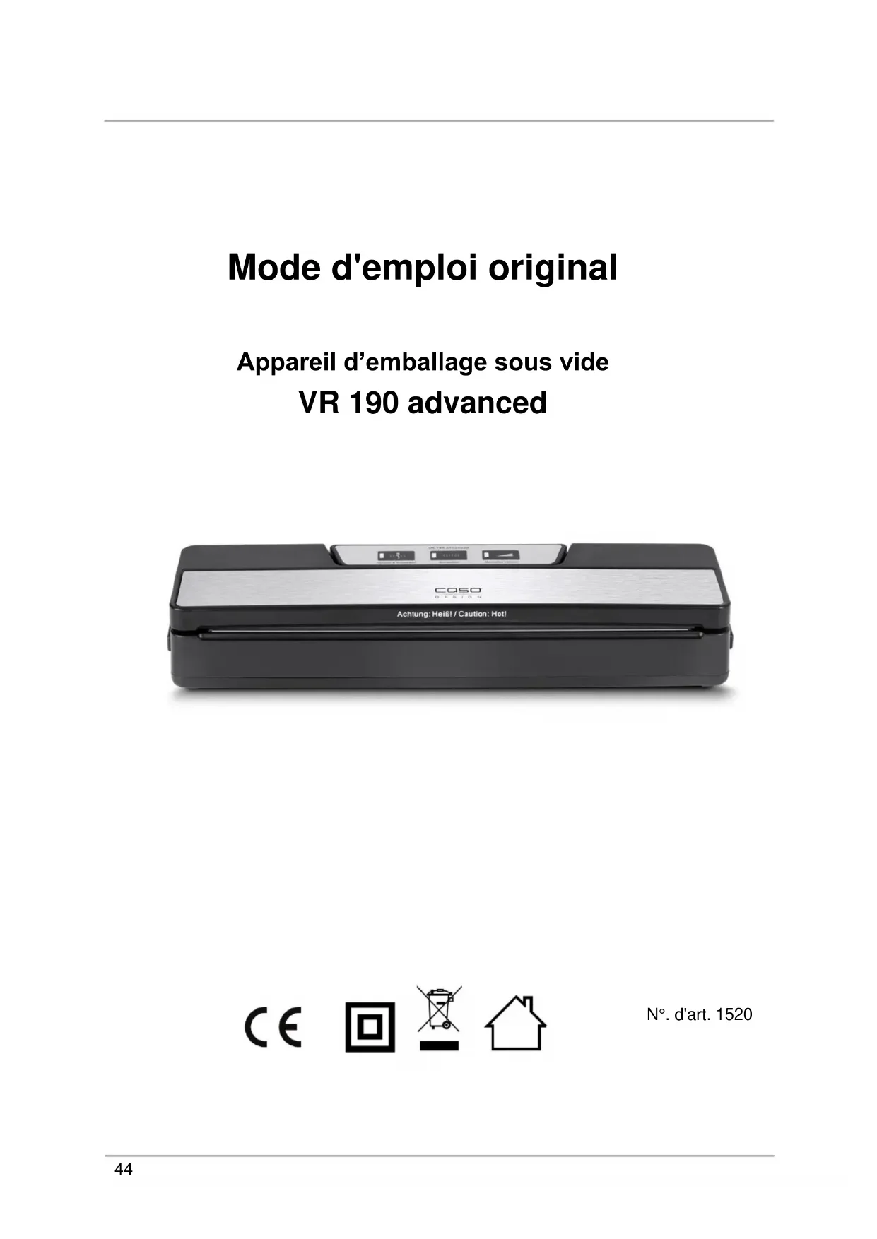 MODE D'EMPLOI VR 190 advanced CASO