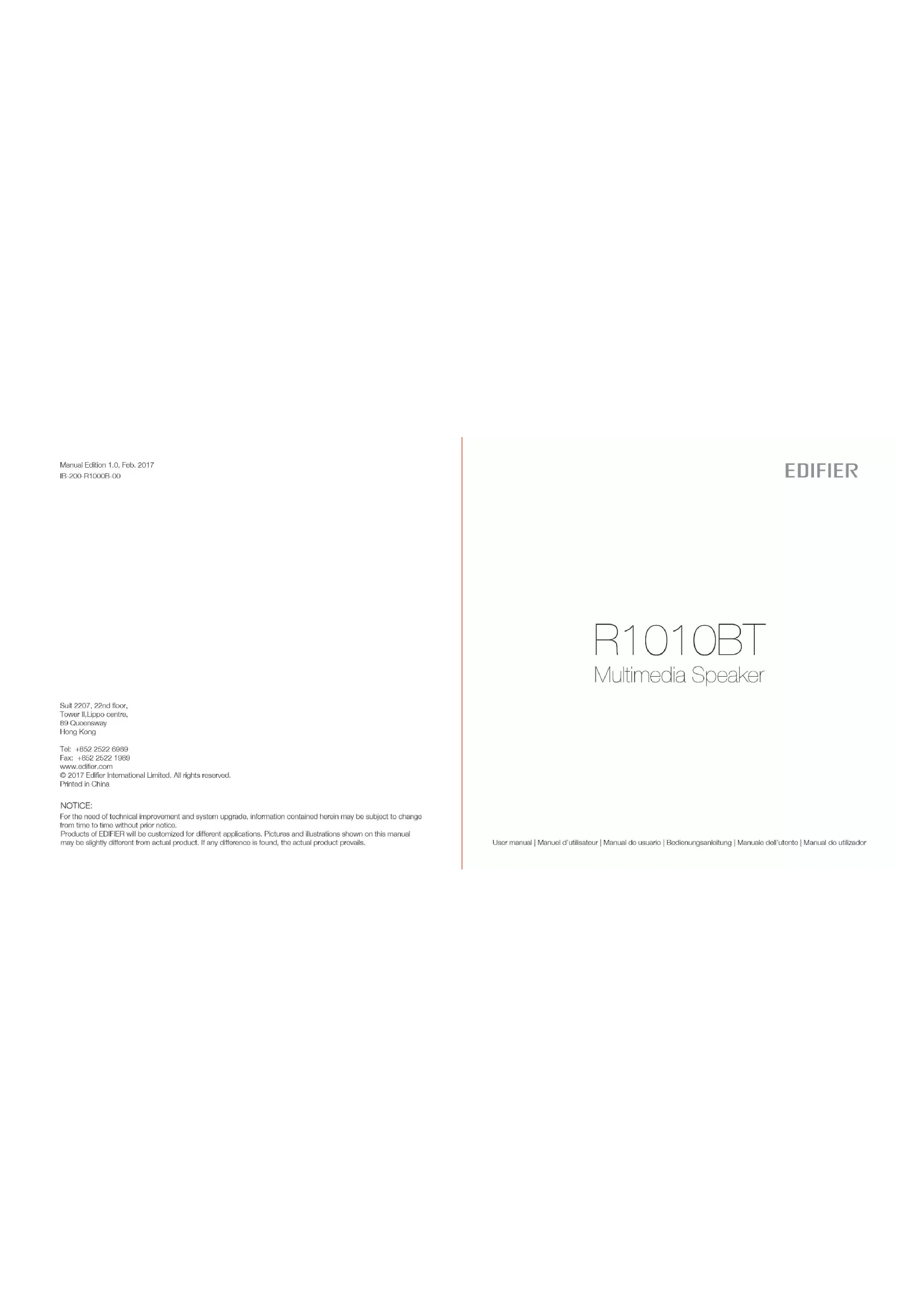 Retrouvez gratuitement la notice de l'appareil R1010BT EDIFIER au format PDF.
