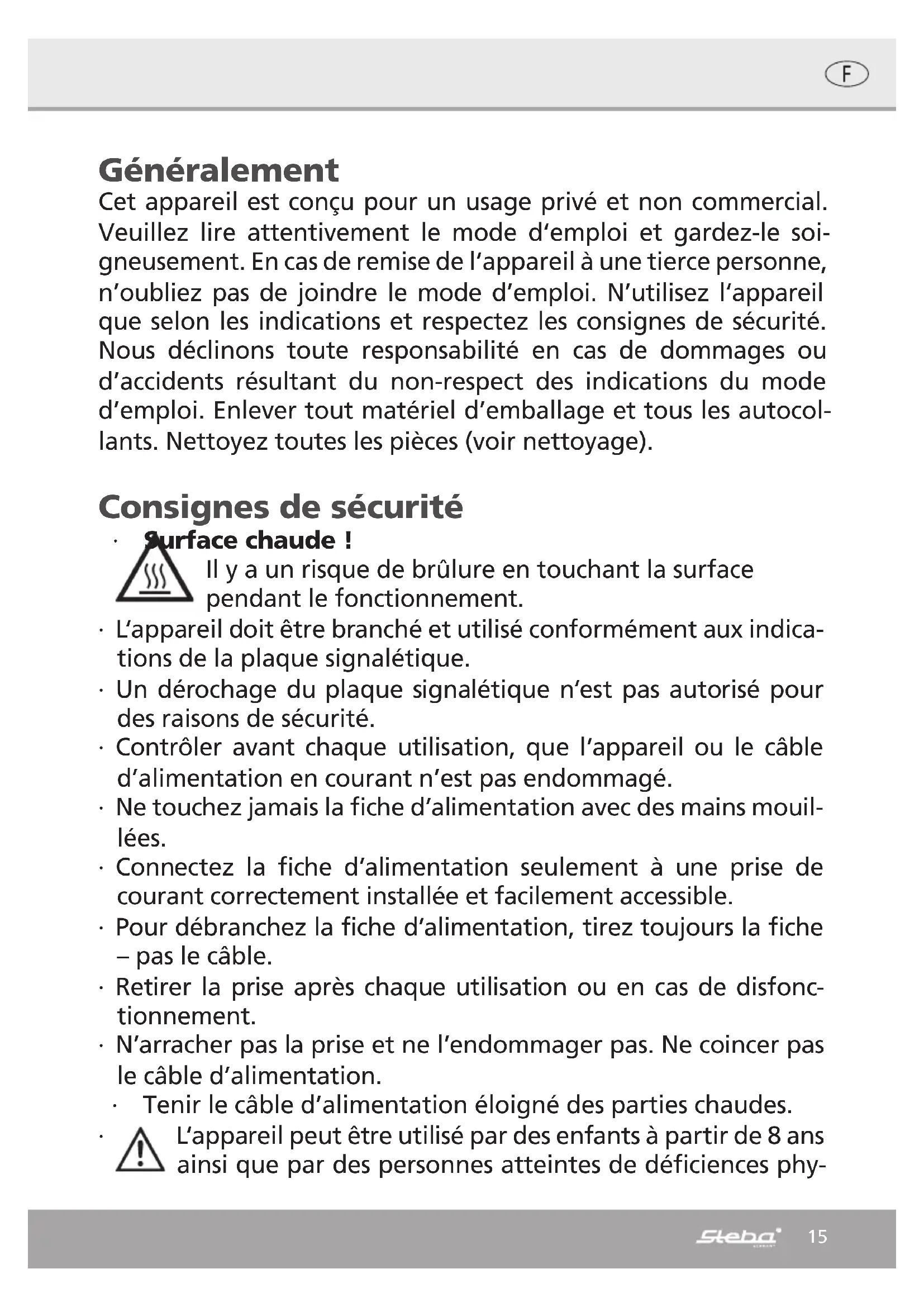 Retrouvez gratuitement la notice de l'appareil WE 16 STEBA au format PDF.