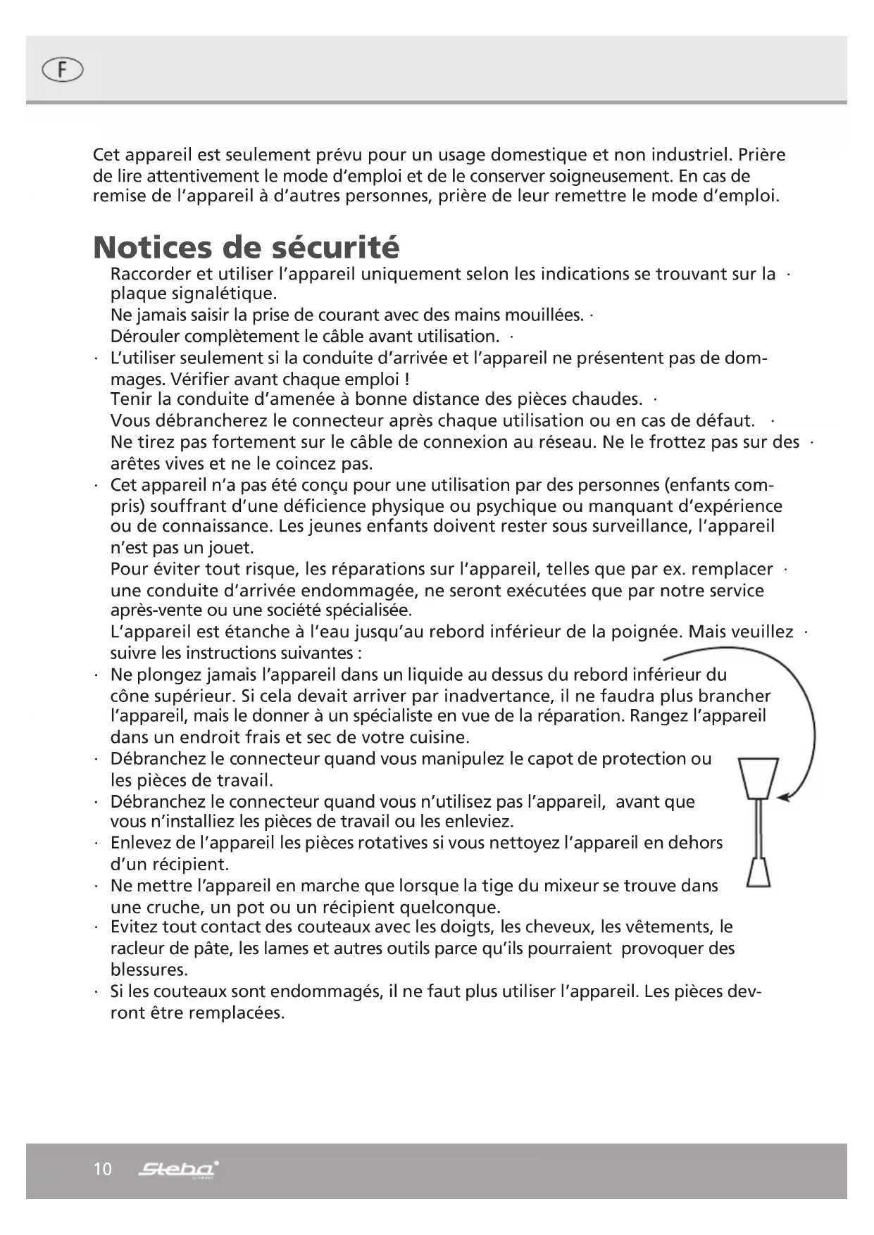 MX 20 K - Mixeur plongeant STEBA - Notice d'utilisation et mode d'emploi gratuit