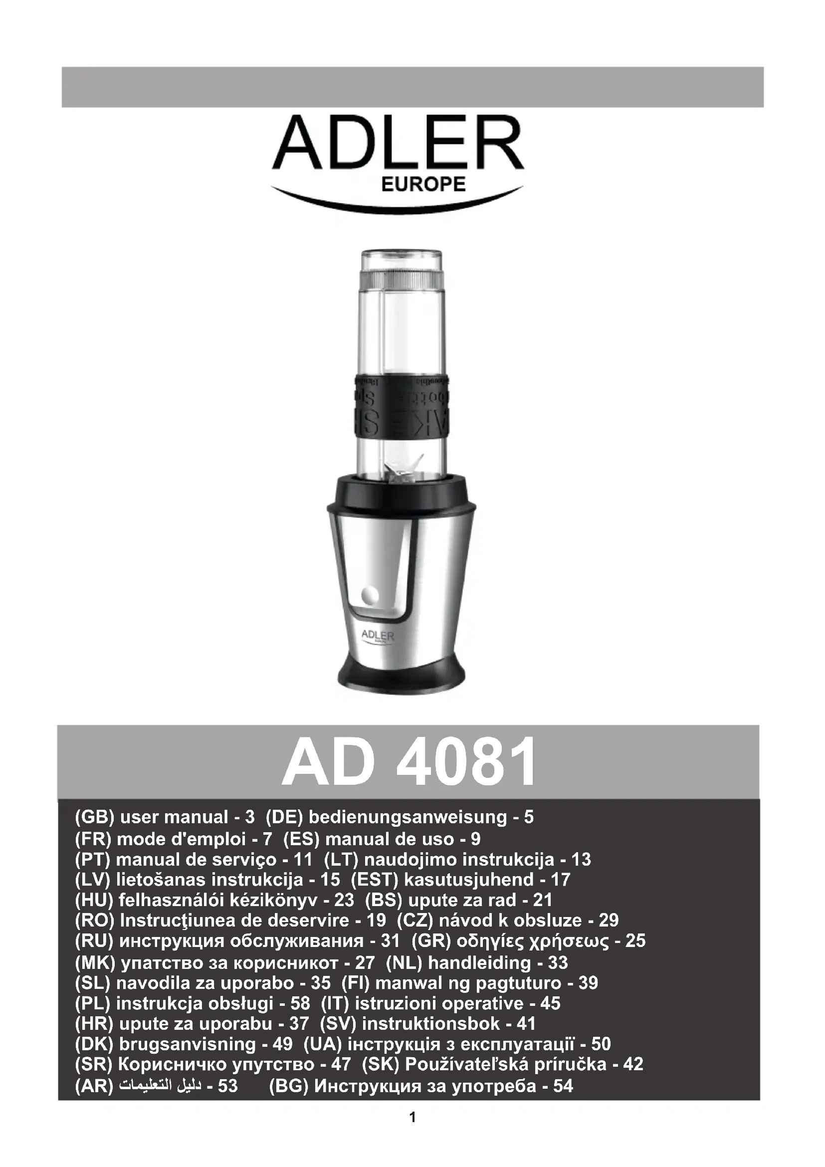 AD 4081 - Blender ADLER - Notice d'utilisation et mode d'emploi gratuit