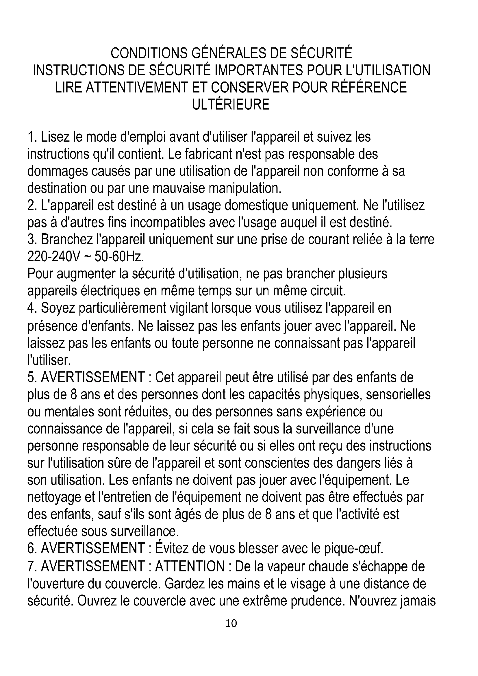 19. Le produit est uniquement destiné à la cuisson des œufs.