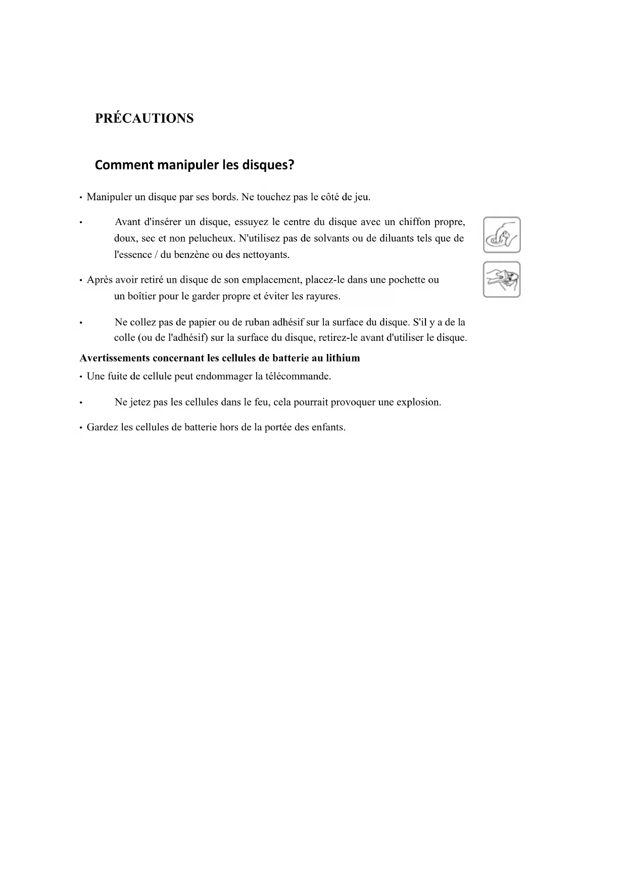- Manipuler un disque par ses bords. Ne touchez pas le côté de jeu.