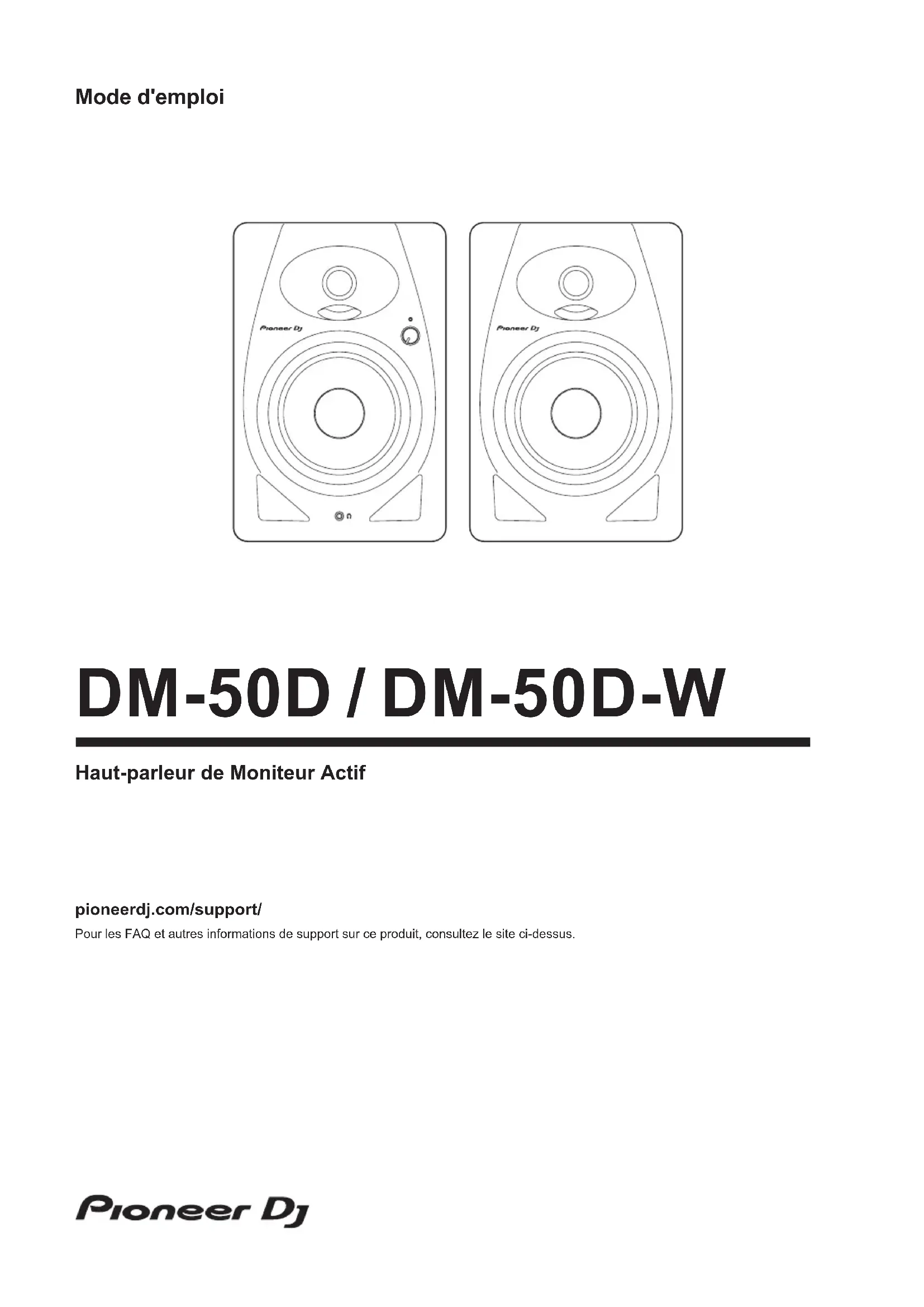 DM-50D / DM-50D-W Haut-parleur de Moniteur Actif Mode d'emploi pioneerdj.com/support/ Pour les FAQ et autres informations de support sur ce produit, consultez le site ci-dessus.2 Avant de commencer Comment lire ce manuel Merci d’avoir choisi ce produit Pioneer DJ. Veillez à lire ce manuel, ainsi que le “Guide de démarrage rapide” et les “Précautions à l’utilisation” également fournis avec ce produit. Ces documents contiennent des informations importantes que vous devez comprendre avant d’utiliser cet appareil. Contenu du carton d’emballage