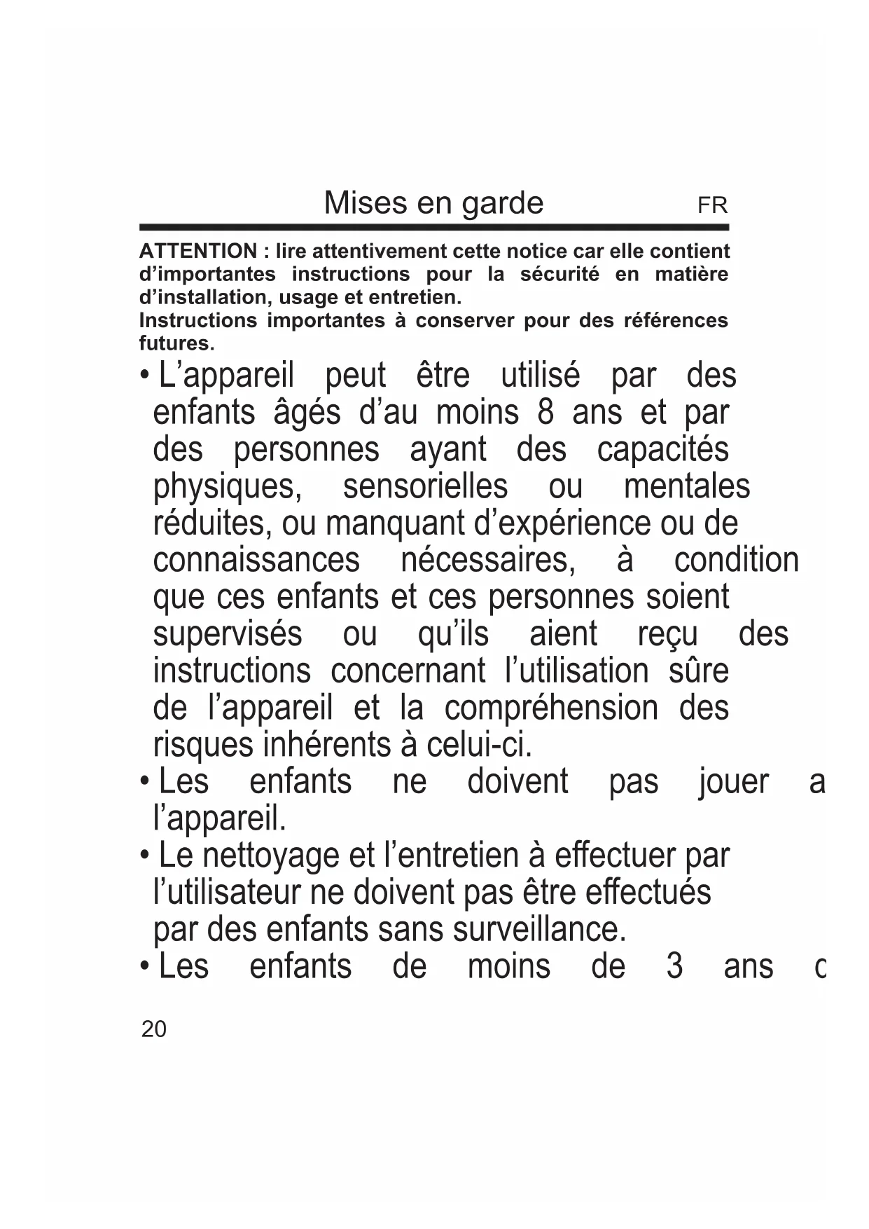- Les enfants ne doivent pas jouer avec l’appareil.