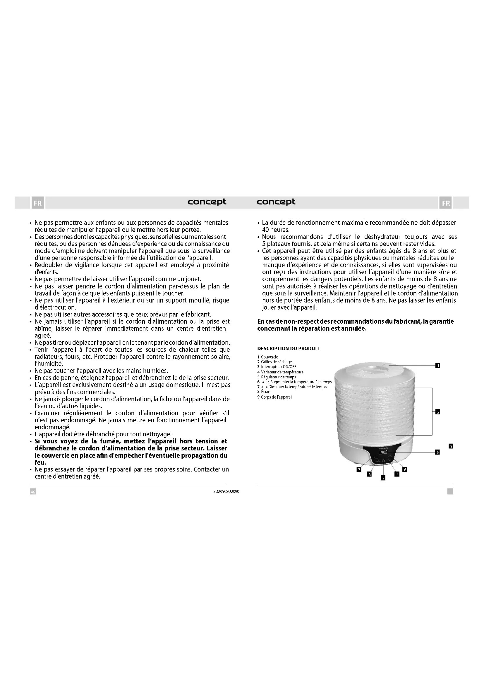SO2090 - Déshydrateur alimentaire Concept - Notice d'utilisation et mode d'emploi gratuit