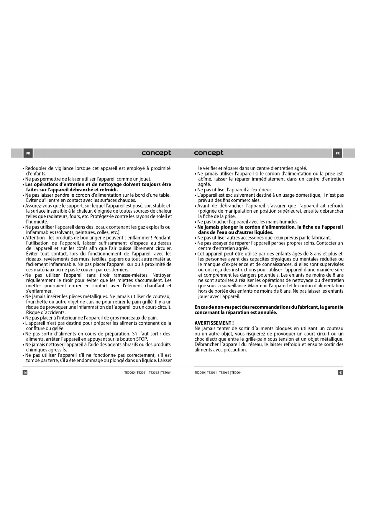 TE2064 - Grille pain Concept - Notice d'utilisation et mode d'emploi gratuit