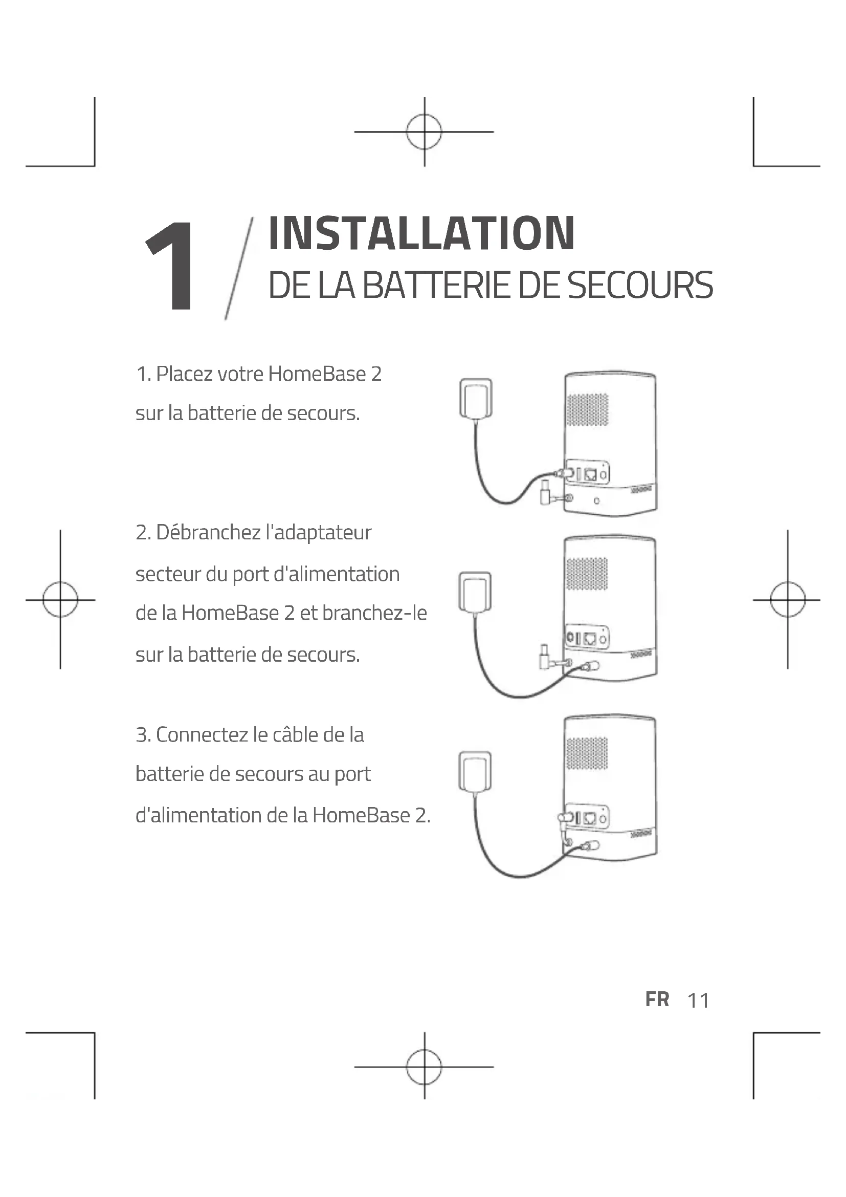 batterie de secours au port d'alimentation de la HomeBase 2. INSTALLATION
