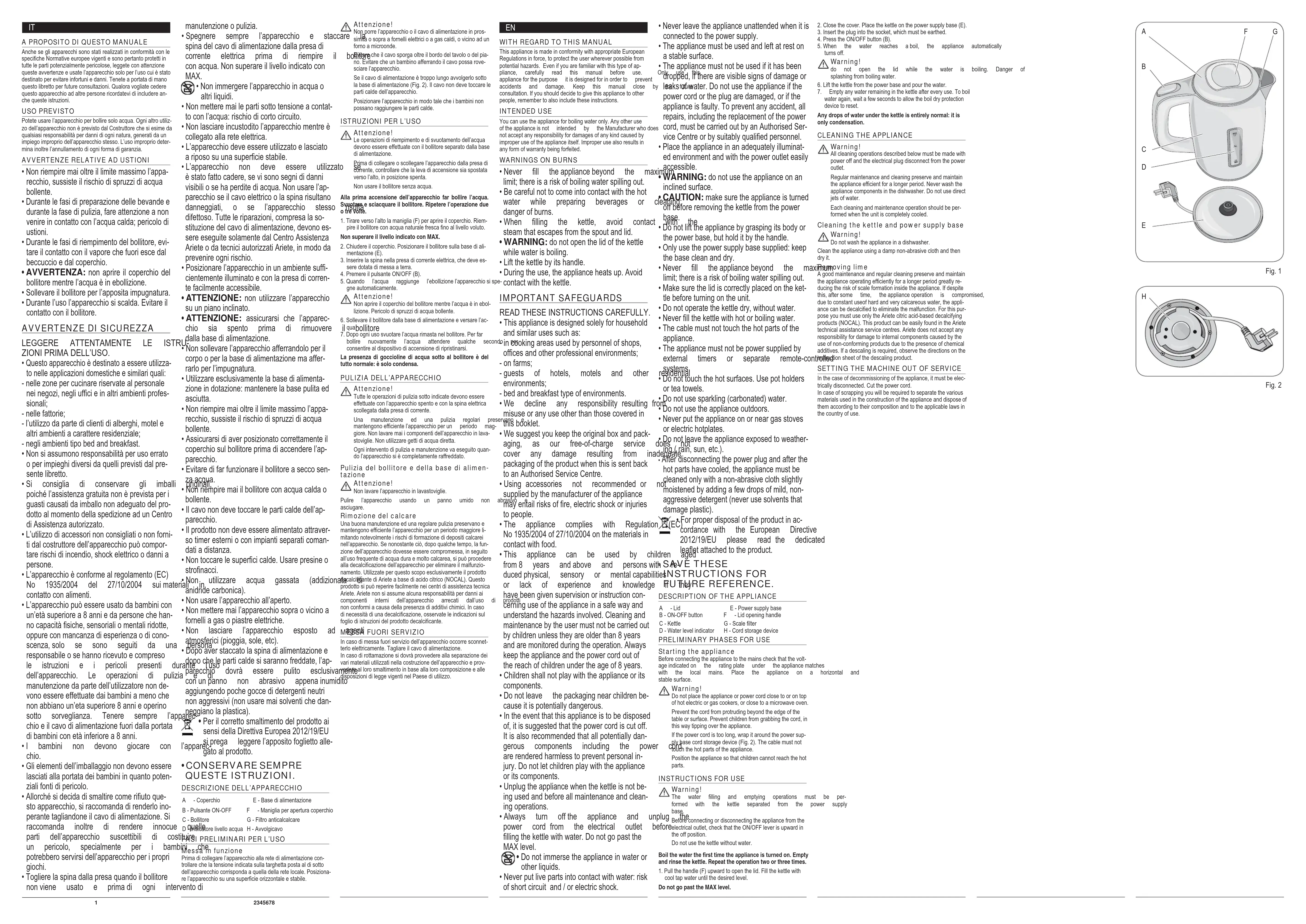 Retrouvez gratuitement la notice de l'appareil 2875 ARIETE au format PDF.