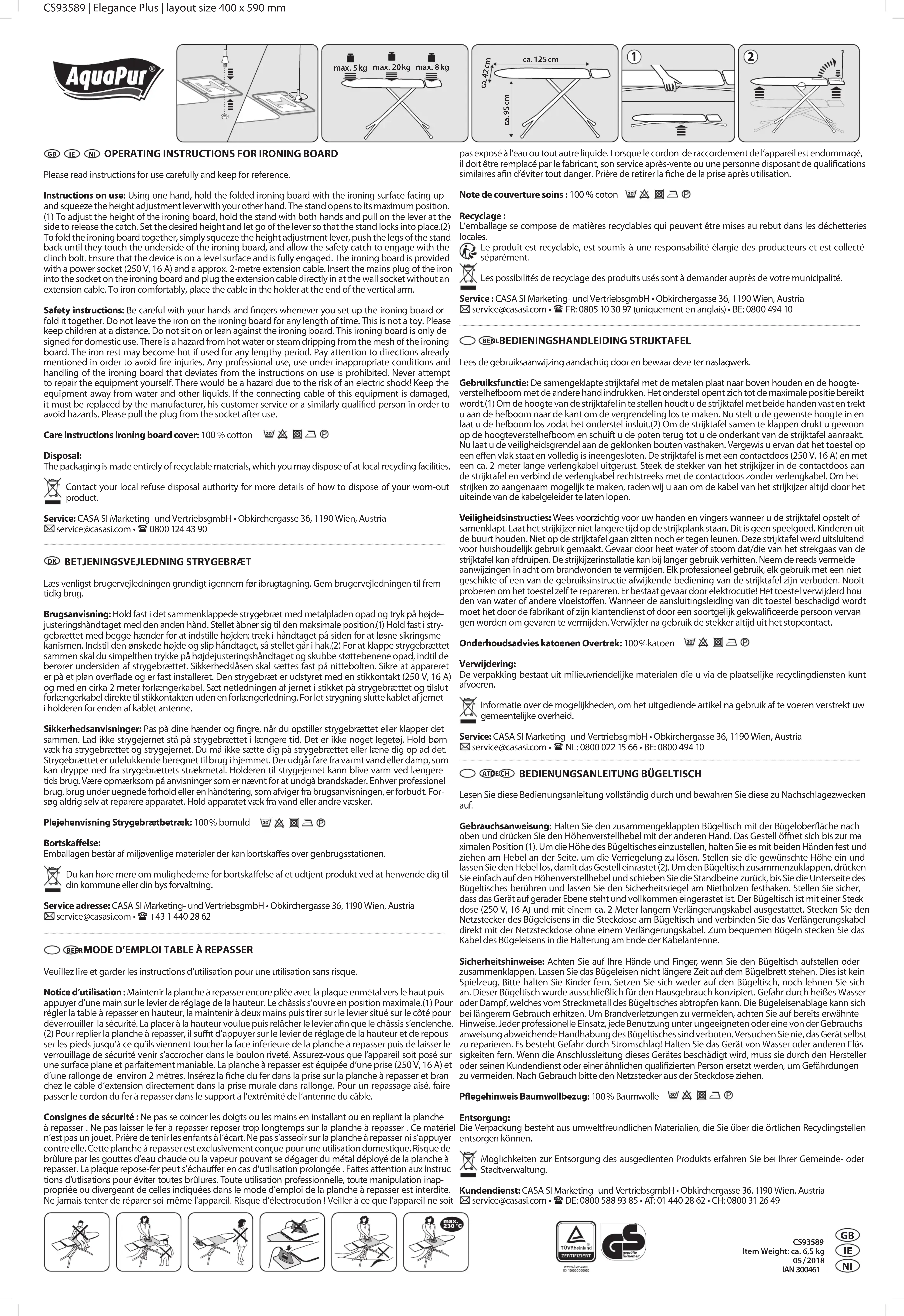 IAN 345715 - Table à repasser AQUAPUR - Notice d'utilisation et mode d'emploi gratuit