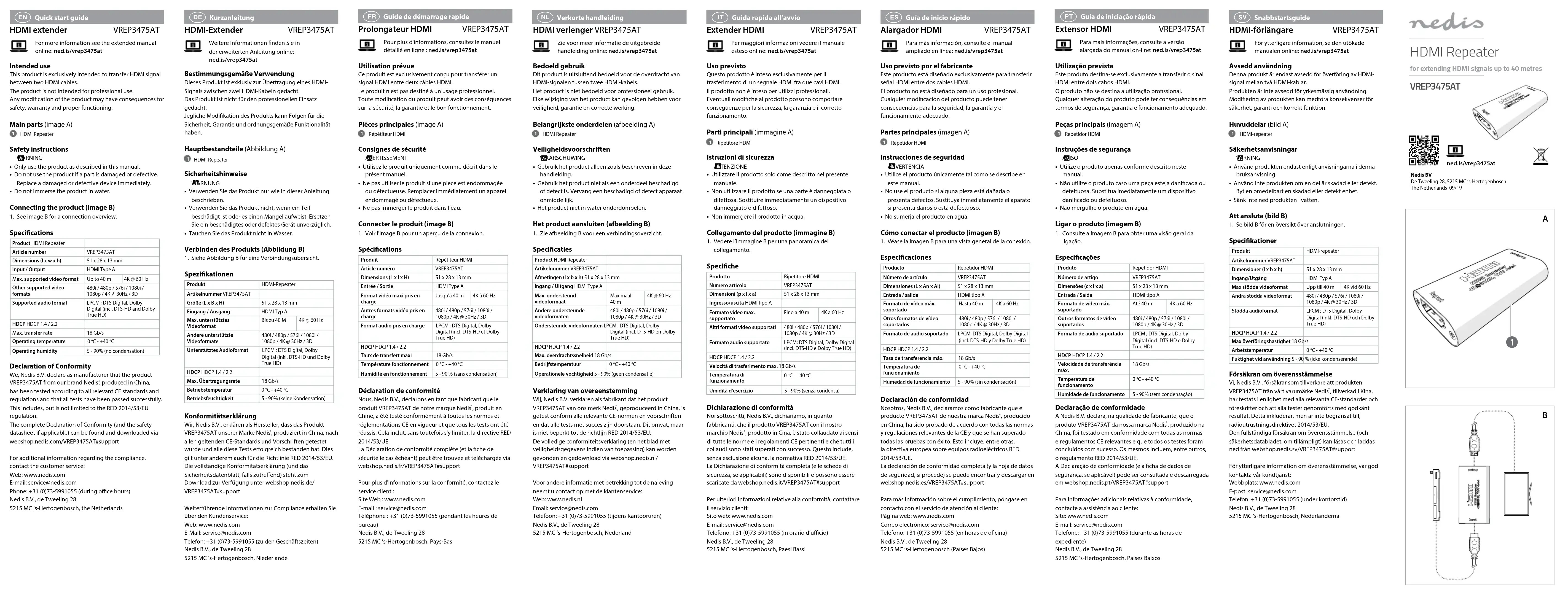 Retrouvez gratuitement la notice de l'appareil VREP3475AT NEDIS au format PDF.