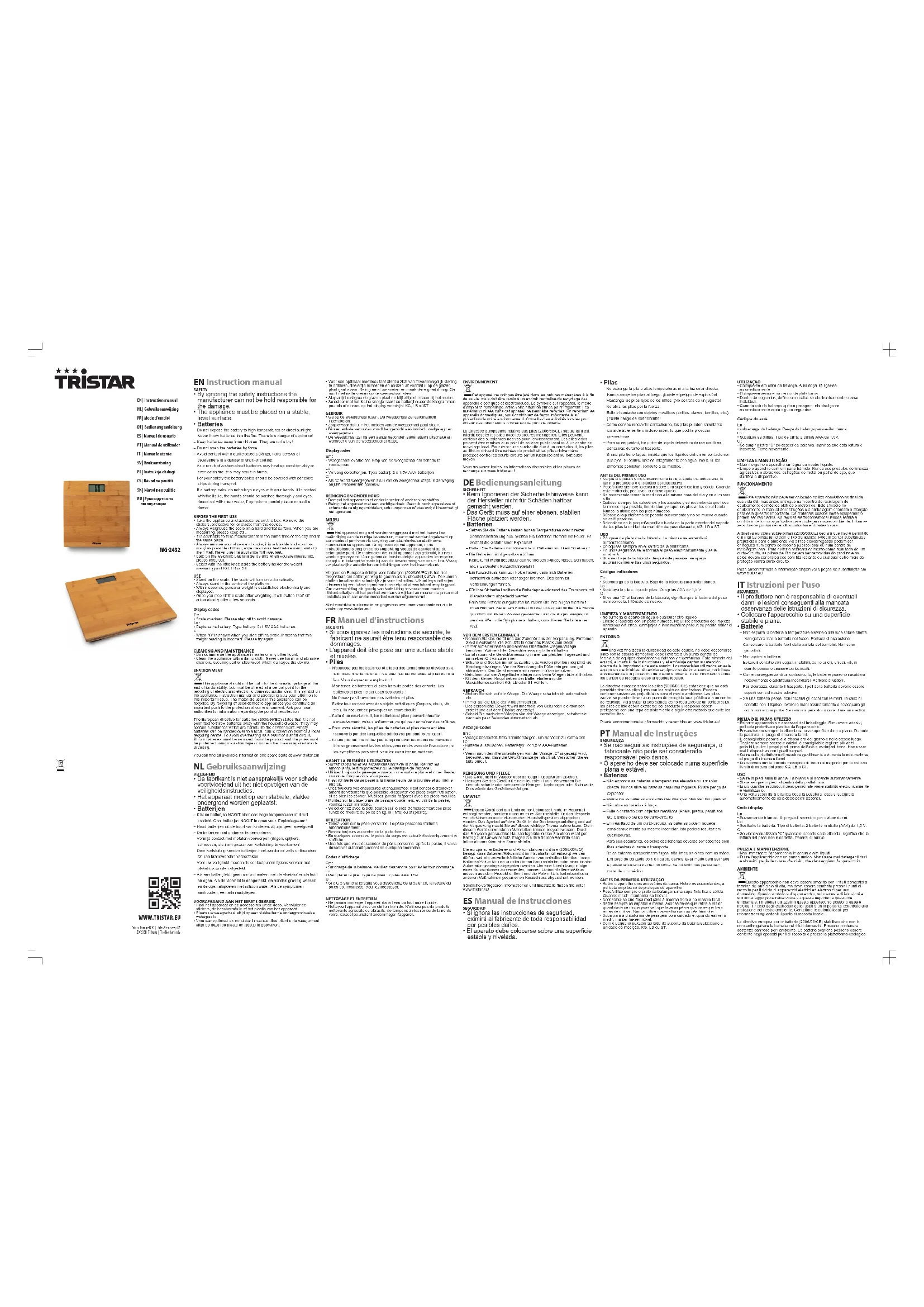 WG2432 - Balance TRISTAR - Notice d'utilisation et mode d'emploi gratuit