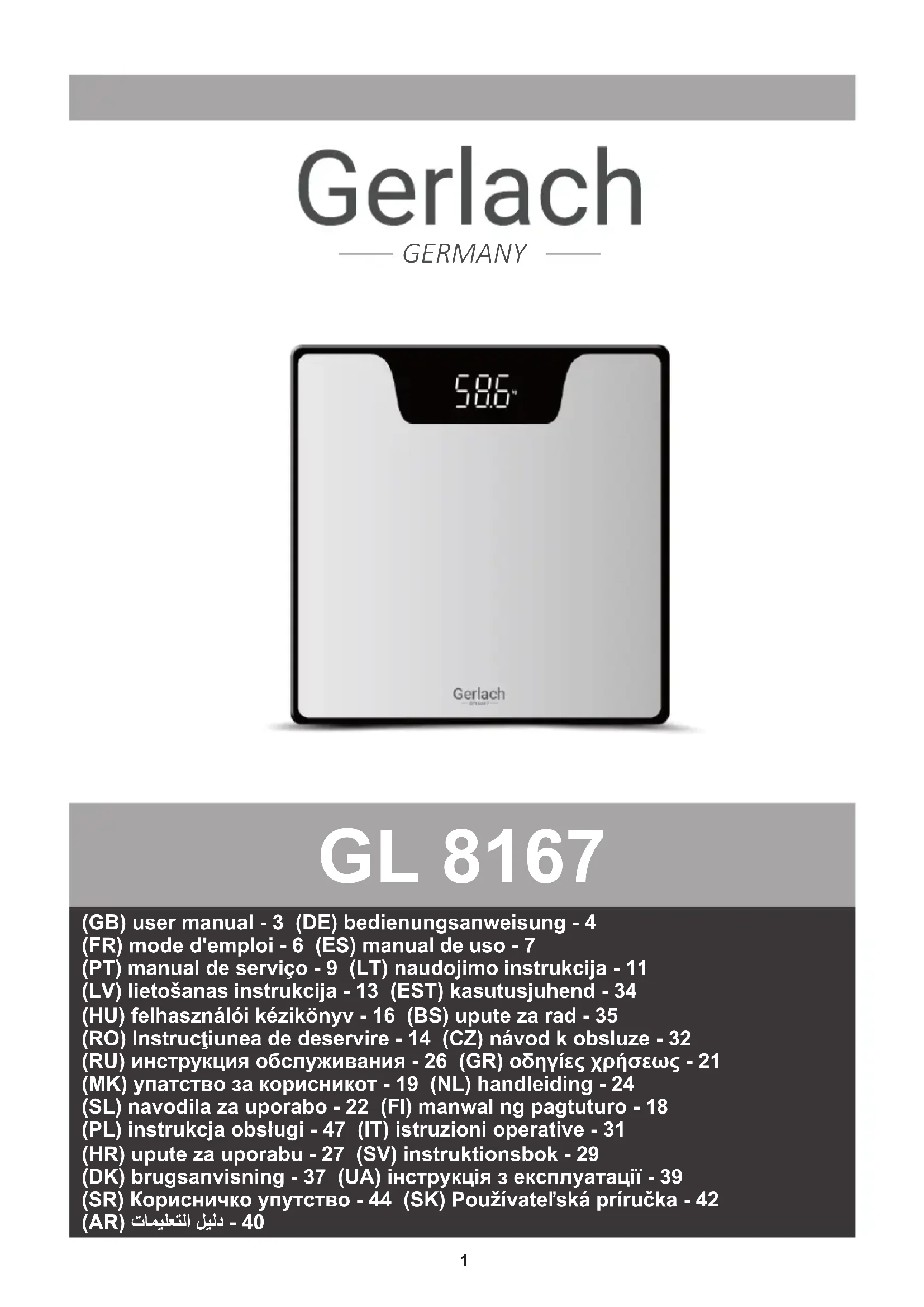 MODE D'EMPLOI GL 8167 Gerlach