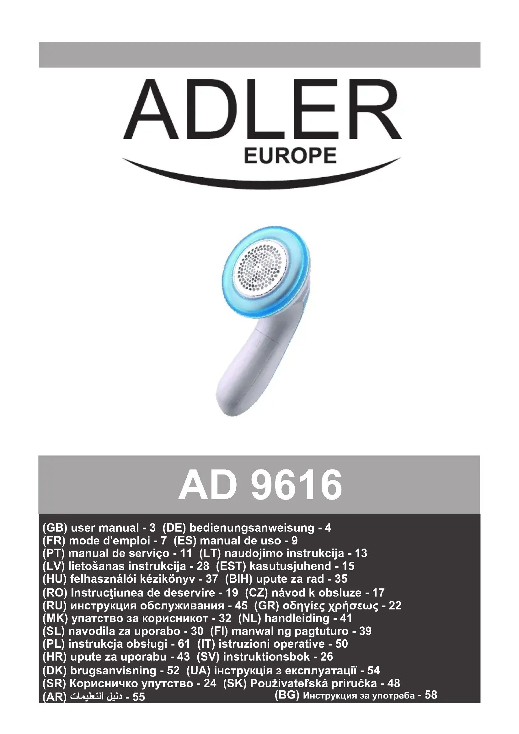 Retrouvez gratuitement la notice de l'appareil AD 9616 ADLER au format PDF.