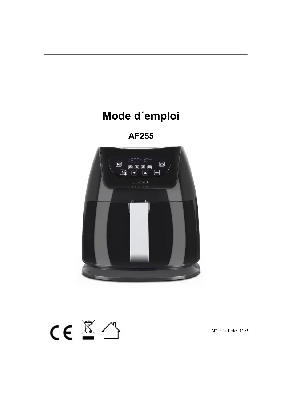 Retrouvez gratuitement la notice de l'appareil AF 255 CASO au format PDF.