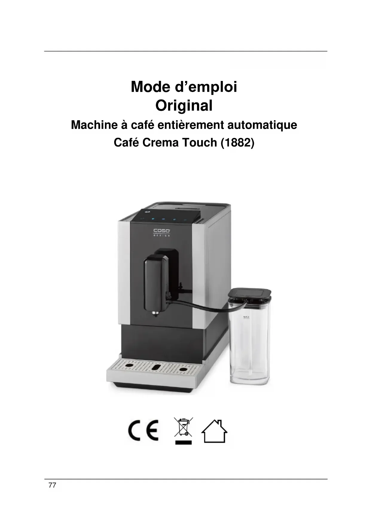 MODE D'EMPLOI Café Crema Touch 1882 CASO