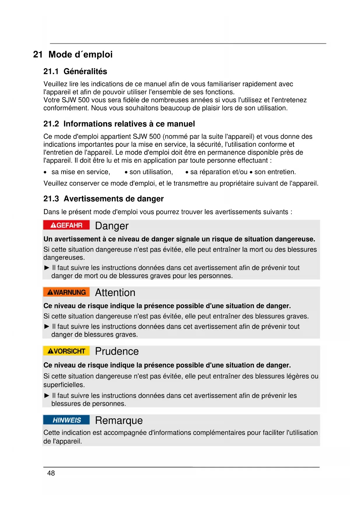 21.3 Avertissements de danger