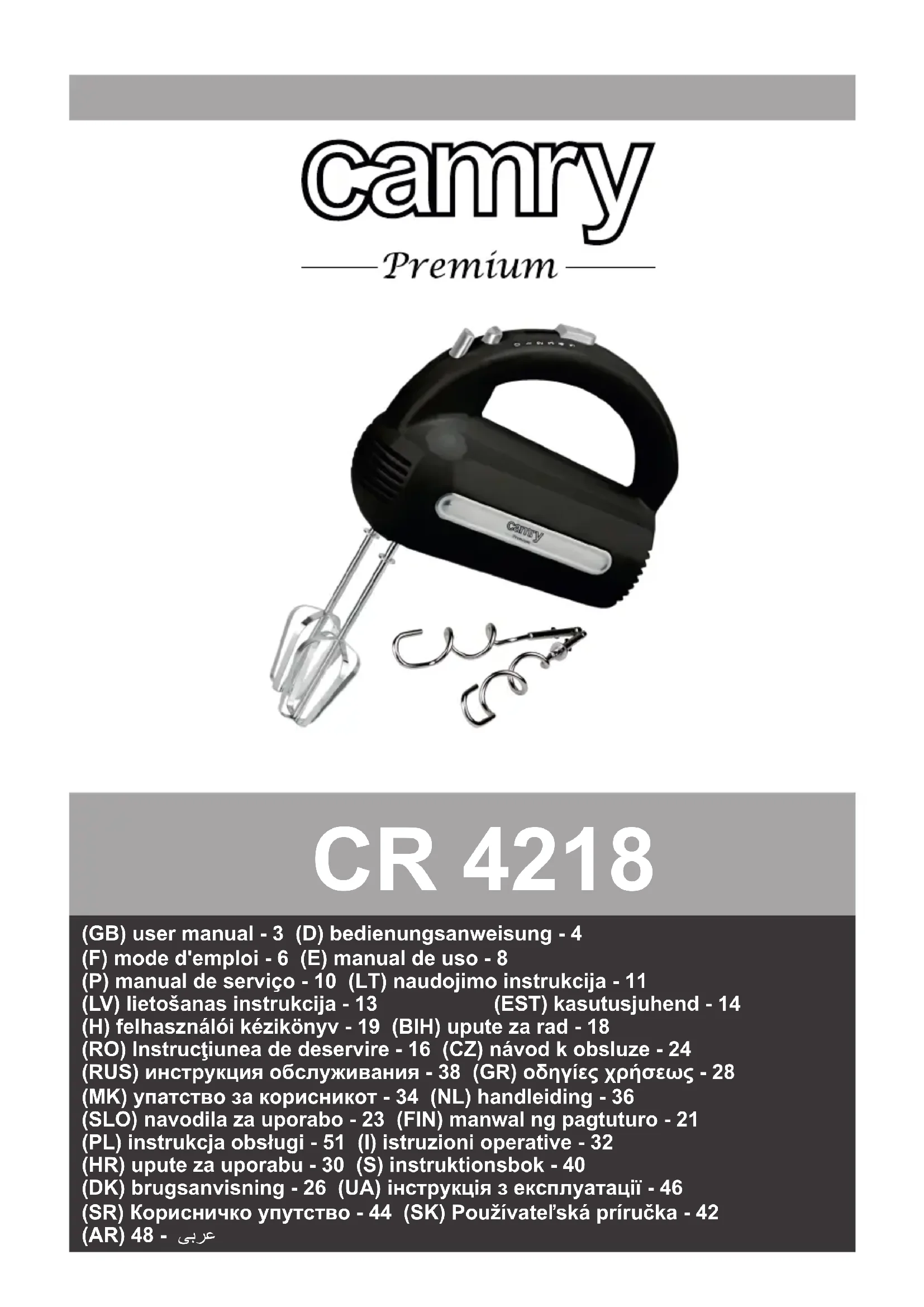 CR 4218 - Robot ménager CAMRY - Notice d'utilisation et mode d'emploi gratuit