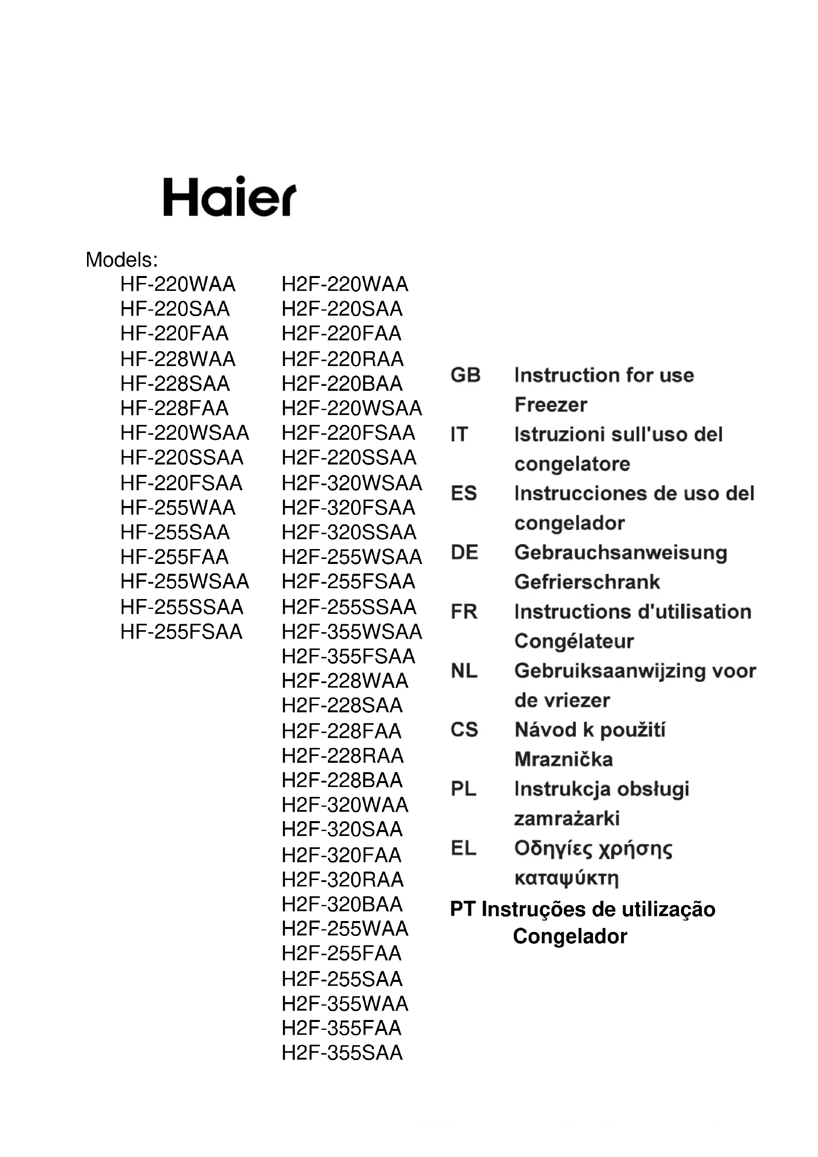 H3F280WF - Congélateur HAIER - Notice d'utilisation et mode d'emploi gratuit